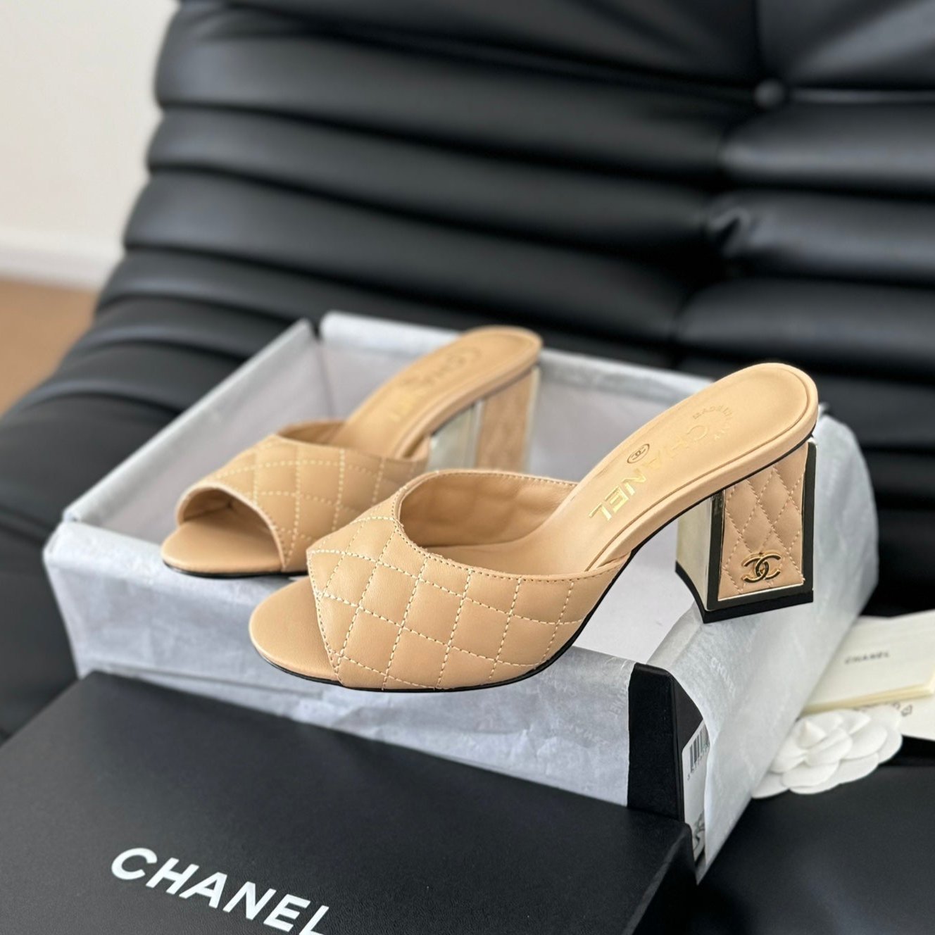 cc sandal 70 beige quilted calfskin