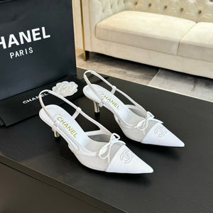 CC 25S Slingback 85mm White Calfskin Black Grosgrain