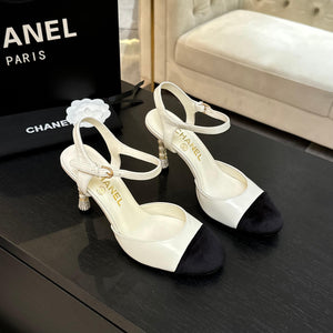 CC 25S Slingback 85mm White Calfskin Black Suede