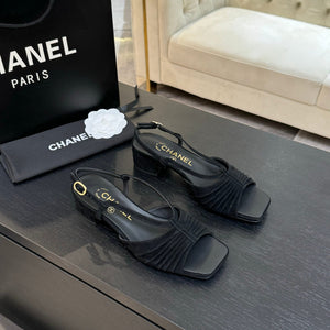 CC 25S Sandal Heel 50mm Black Suede Kidskin Pearl Logo