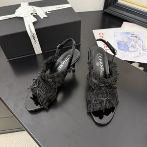 CC 25 Sandal Heel 85mm Black Fabric Grosgrain