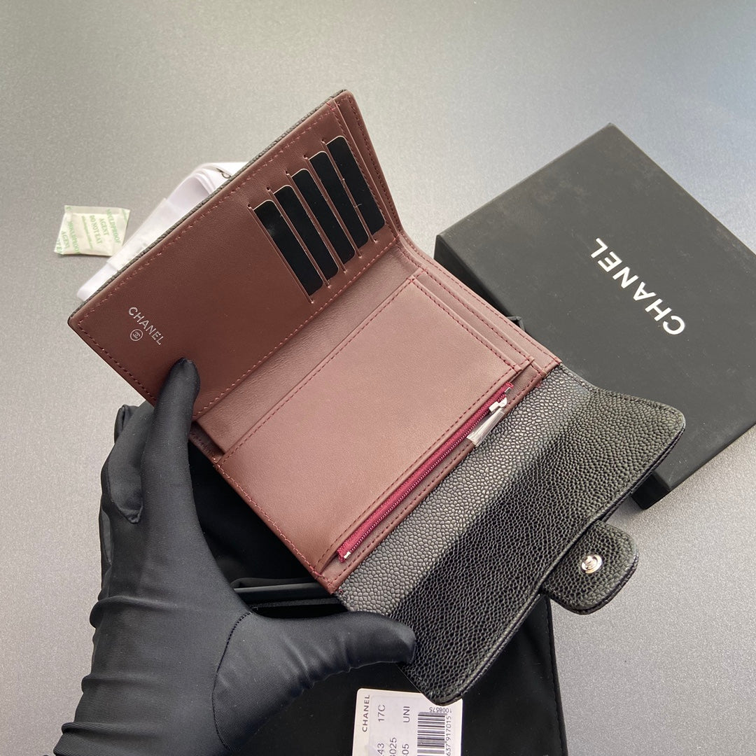 cc wallet 15cm black caviar silver hardware
