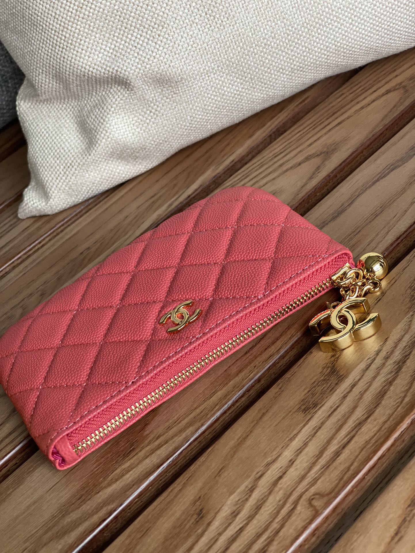 cc zipped wallet 14cm light red caviar gold hardware