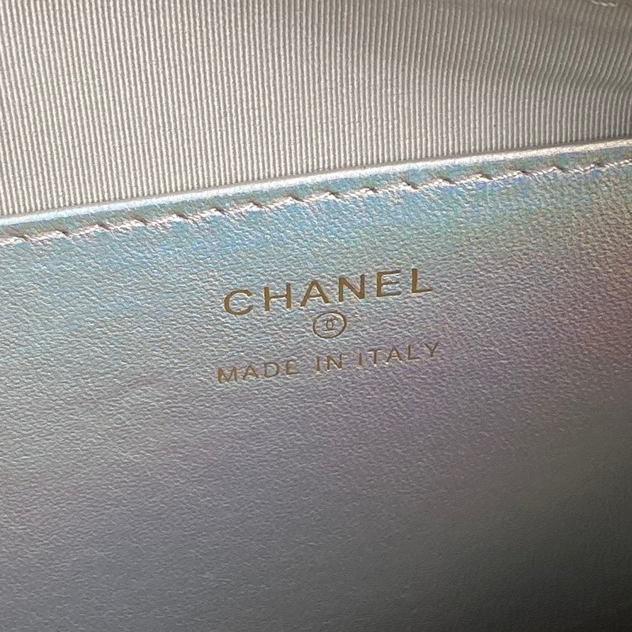 CC 25C Clutch With Strap 21cm Silver Metalic Calfskin