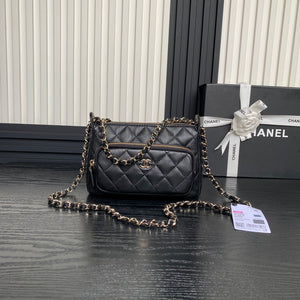 CC 25C Hobo Bag 30cm Black Grained Calfskin