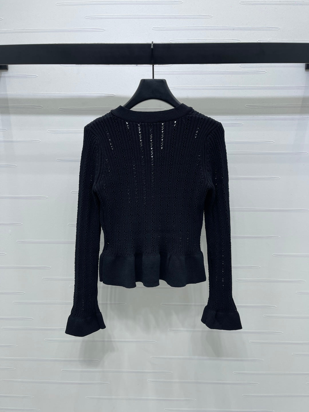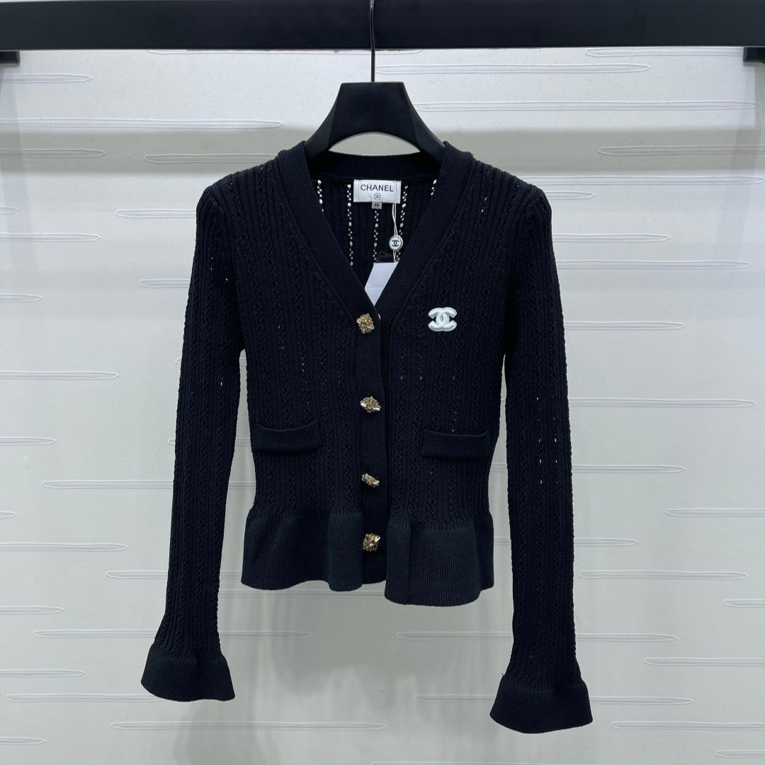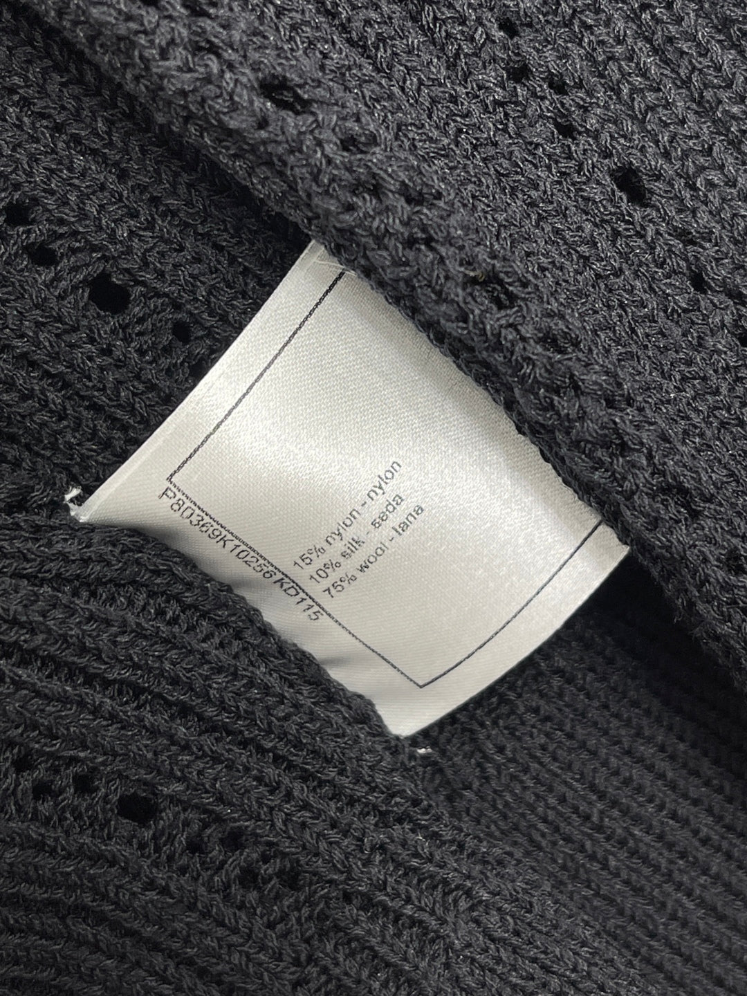 CC 25 Fishtail V-Neck Knitted Long-sleeved Cardigan Black Wool