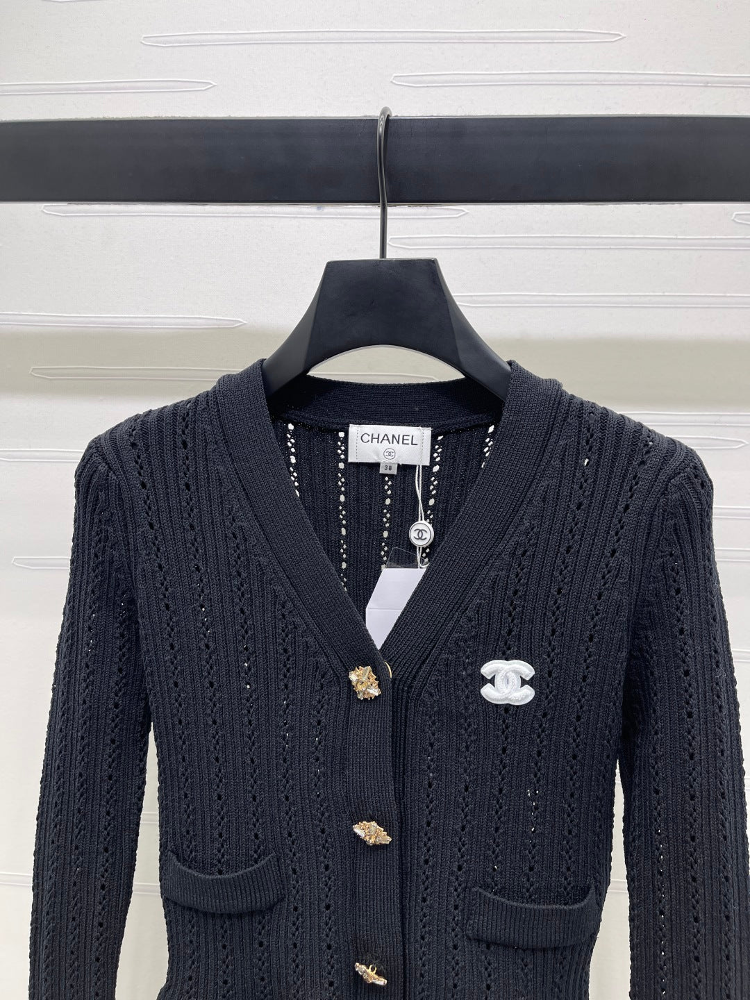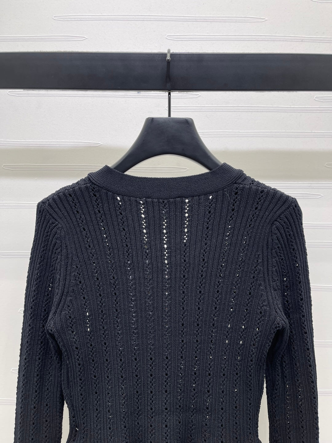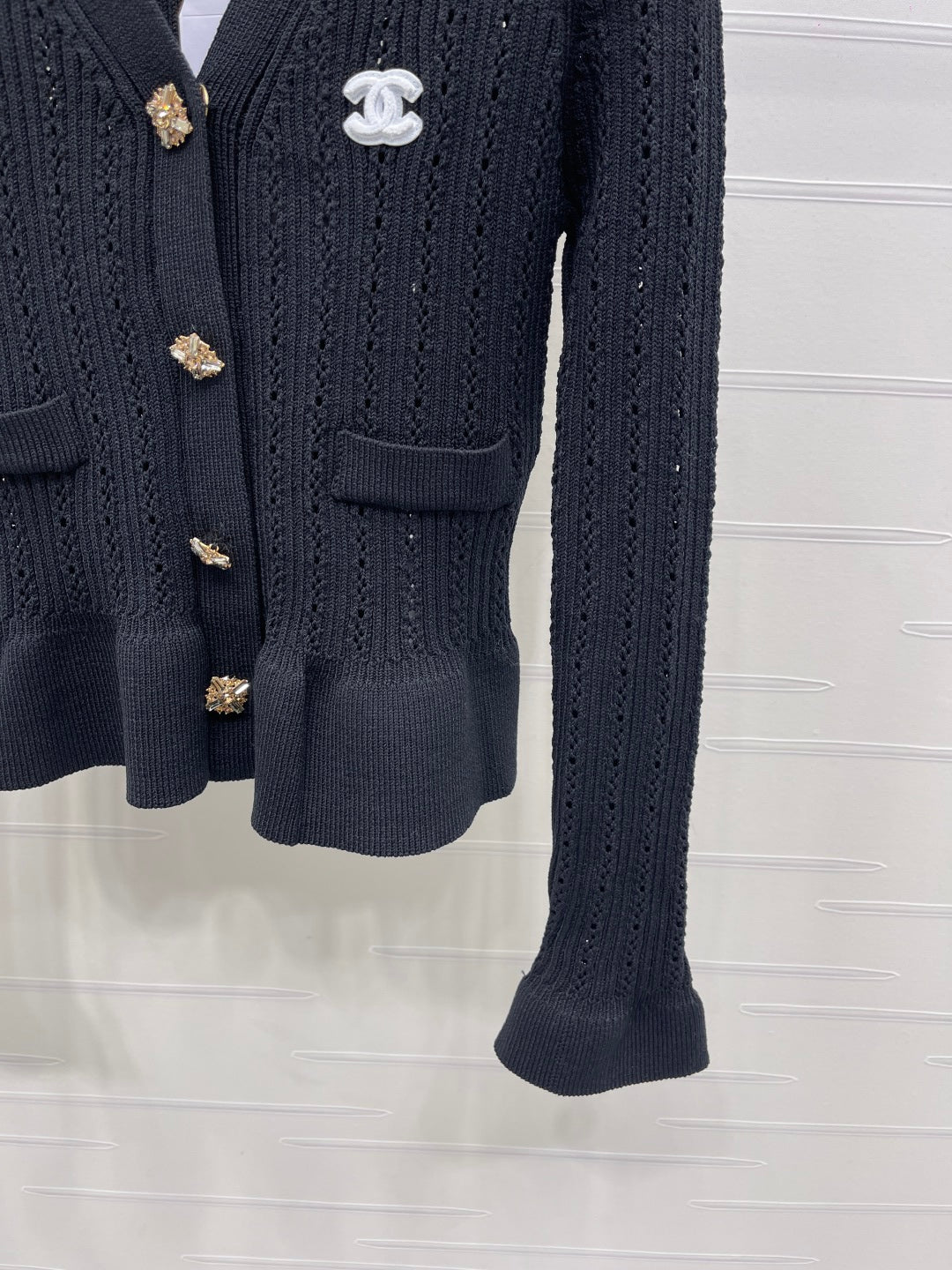 CC 25 Fishtail V-Neck Knitted Long-sleeved Cardigan Black Wool