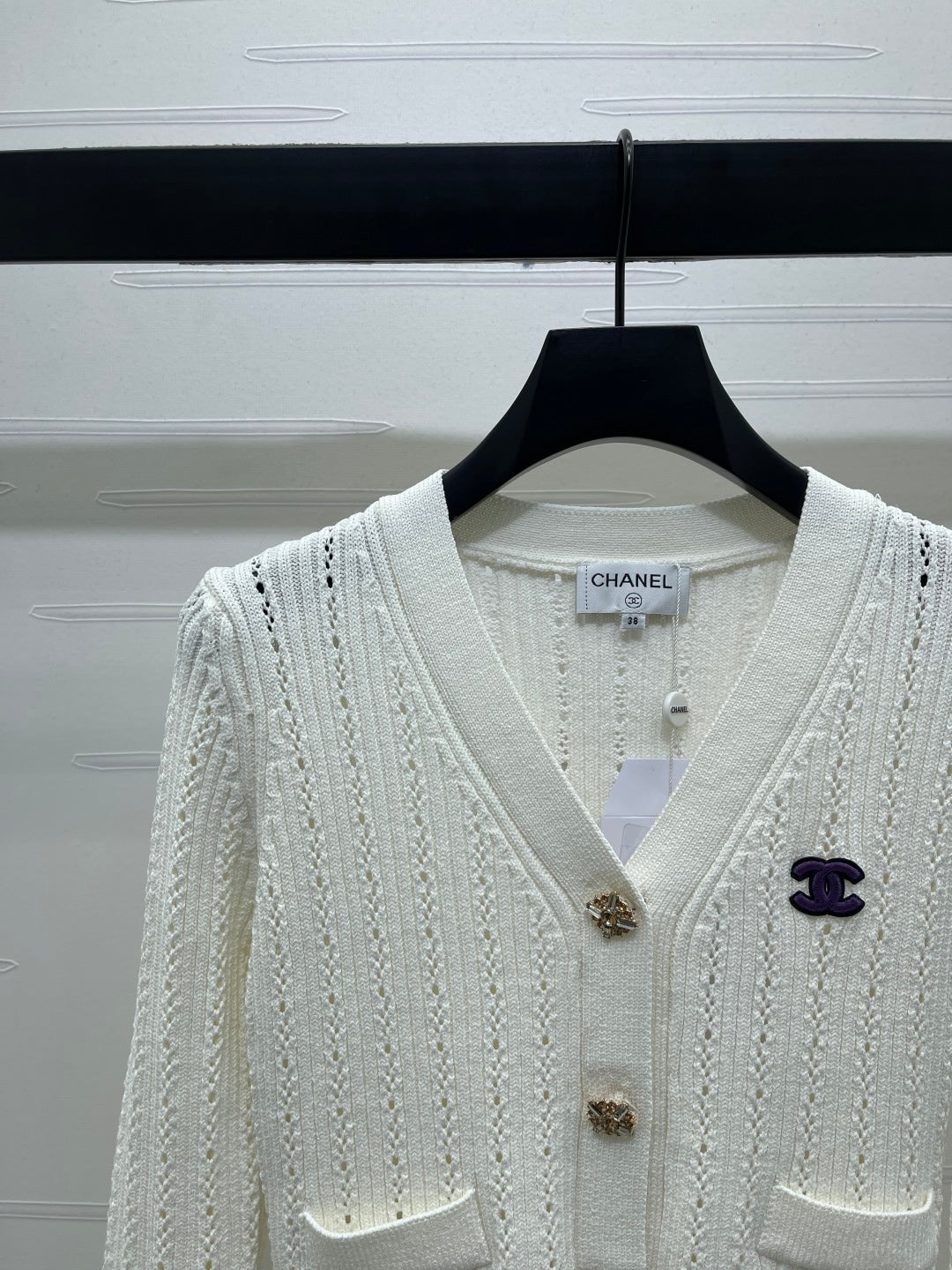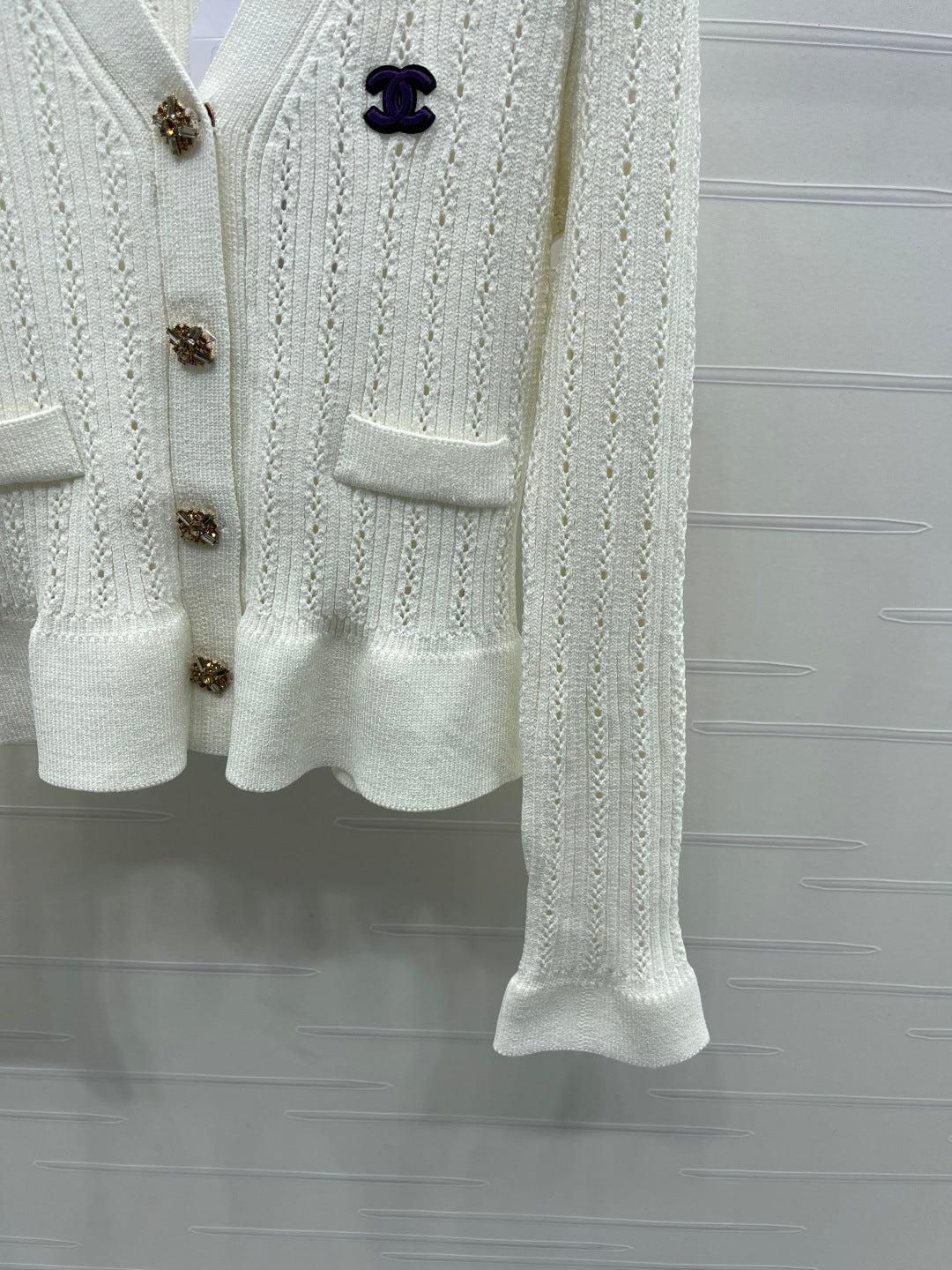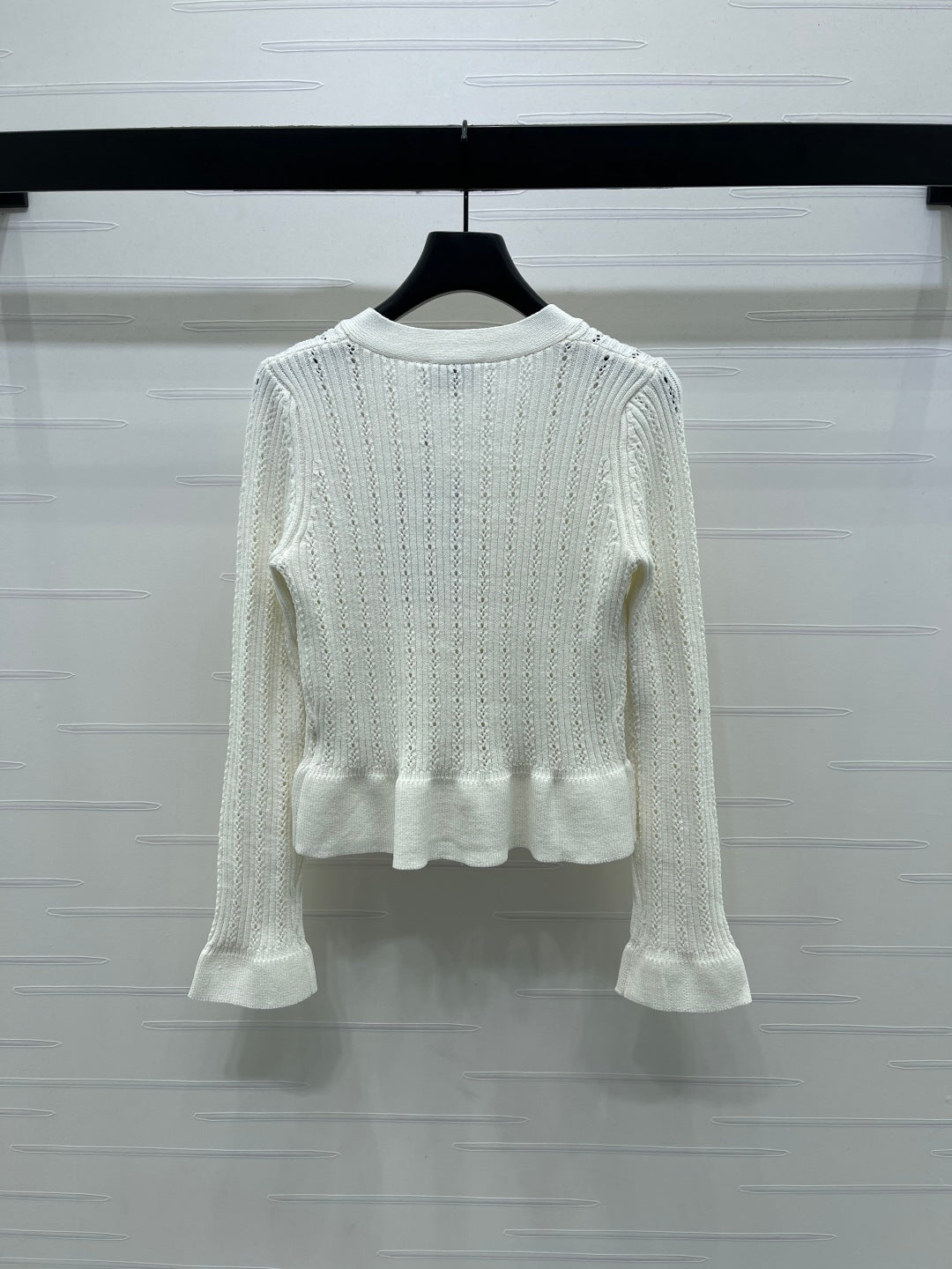 CC 25 Fishtail V-Neck Knitted Long-sleeved Cardigan White Wool