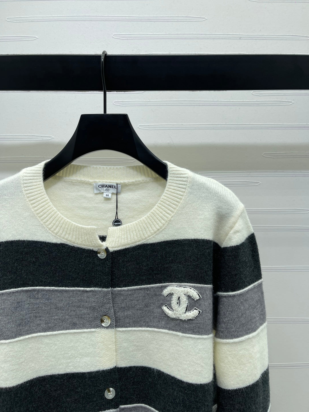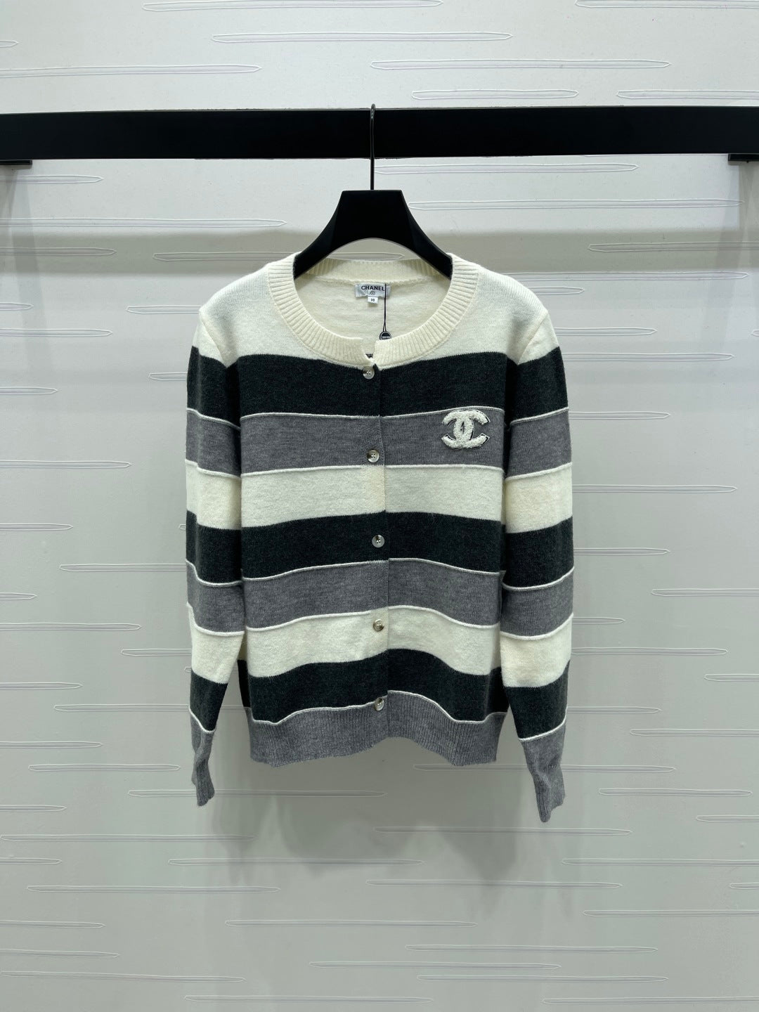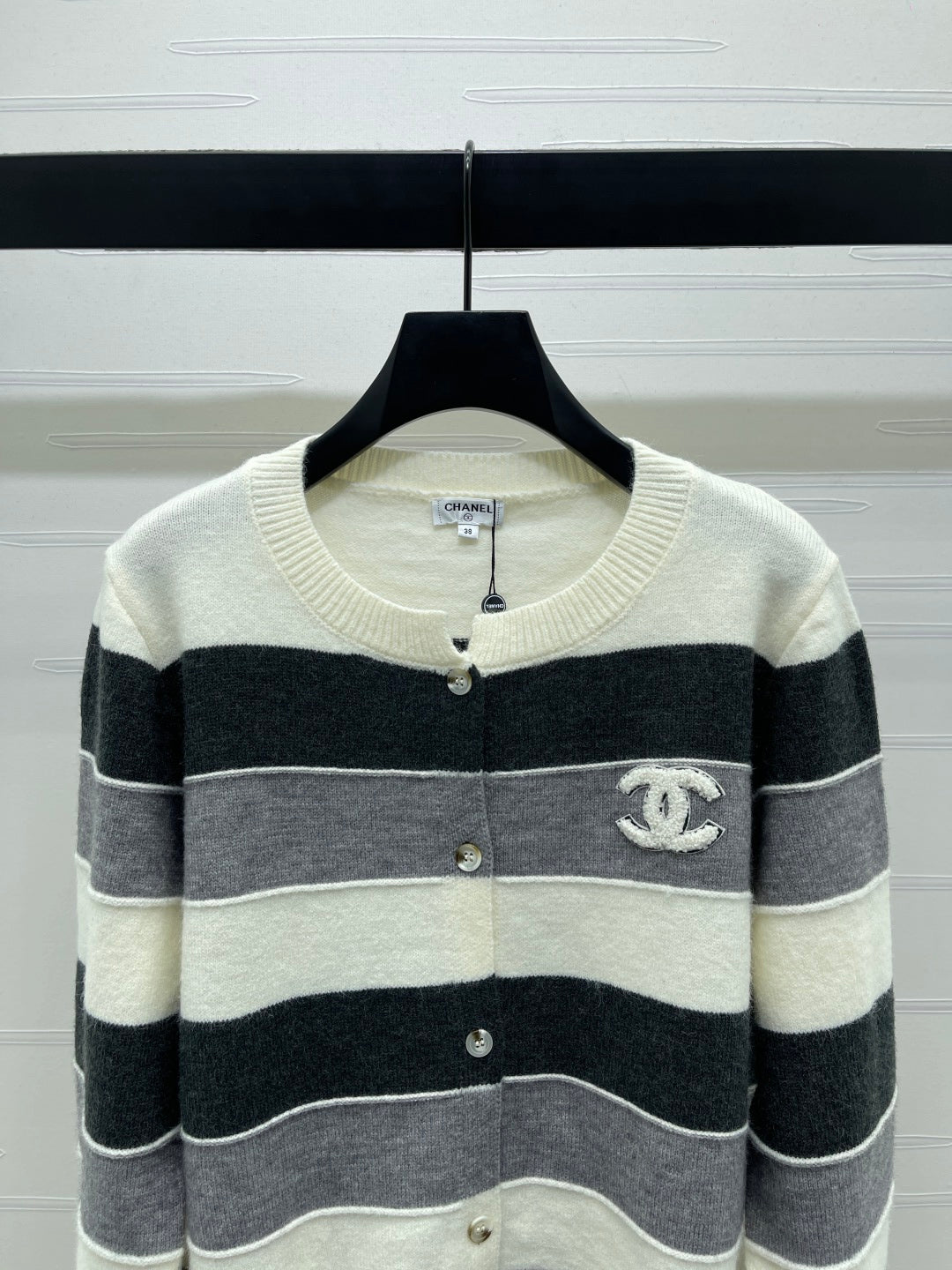 CC 25 Round-Neck Knitted Wool Cashmere Striped Cardigan