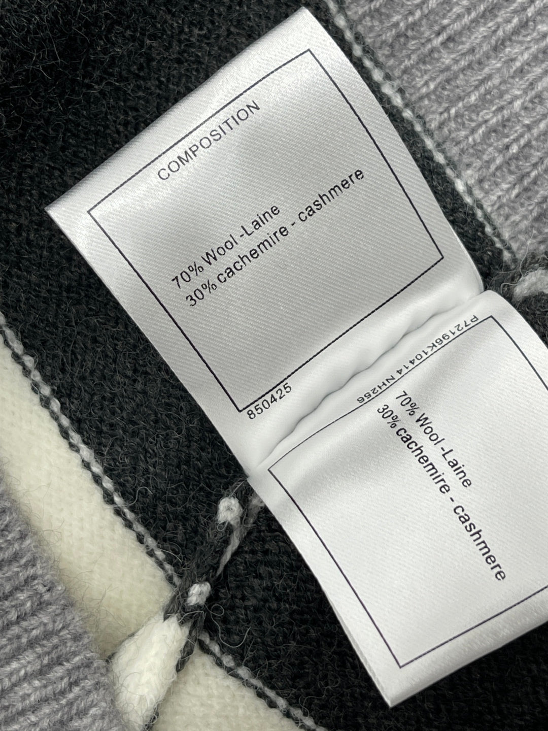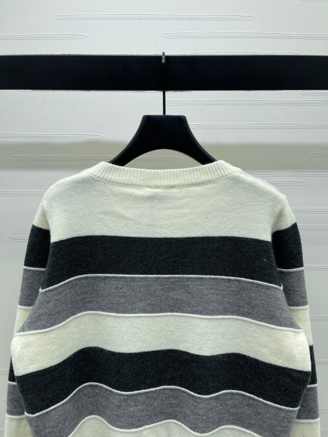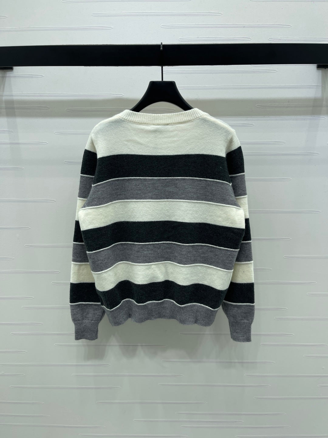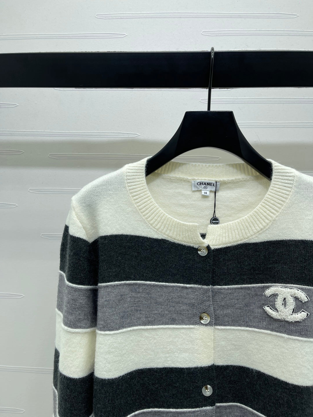 CC 25 Round-Neck Knitted Wool Cashmere Striped Cardigan