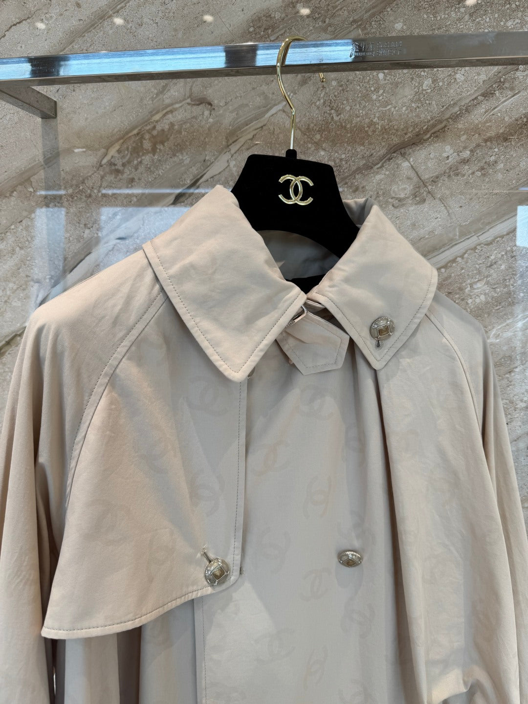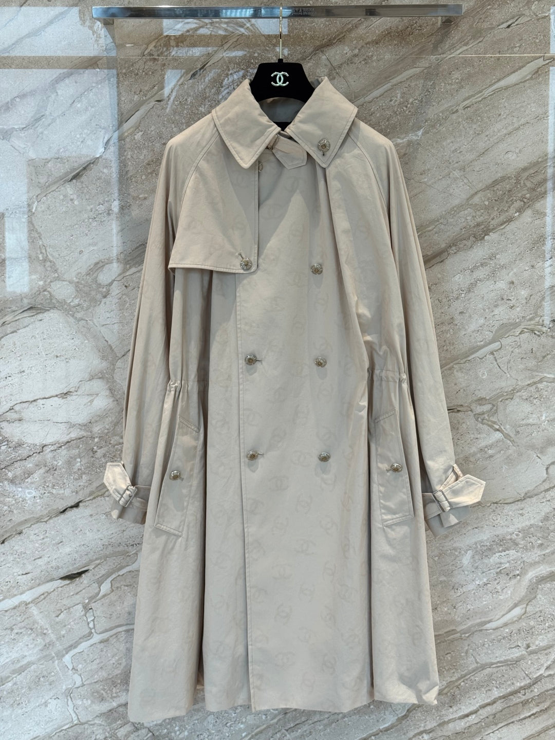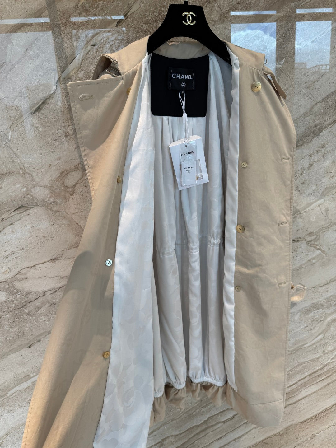 CC 25B Hidden Logo Trench Long Coat Beige Cotton