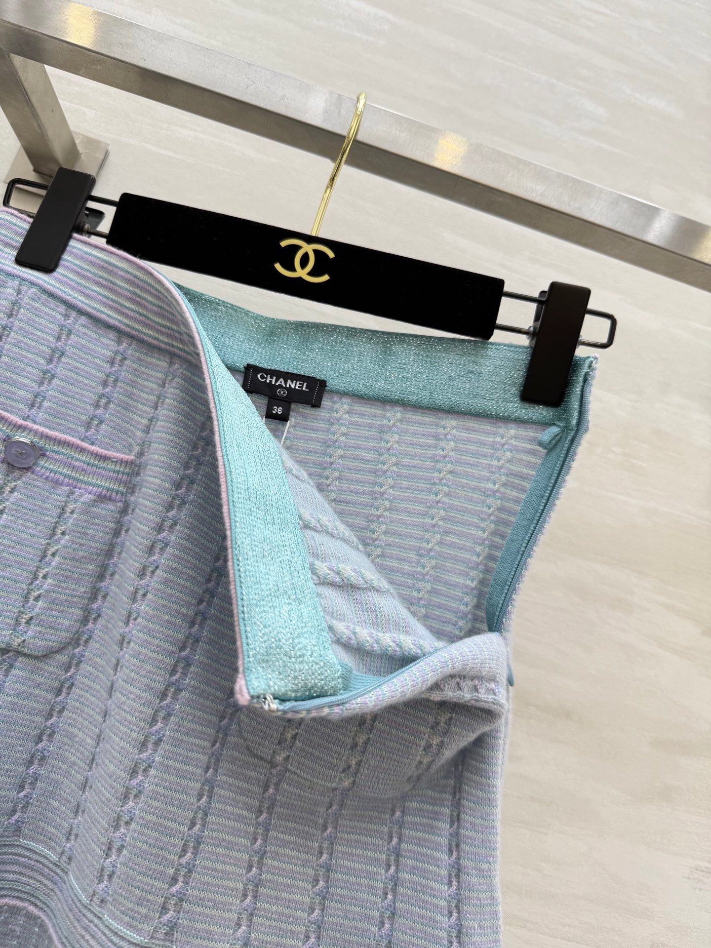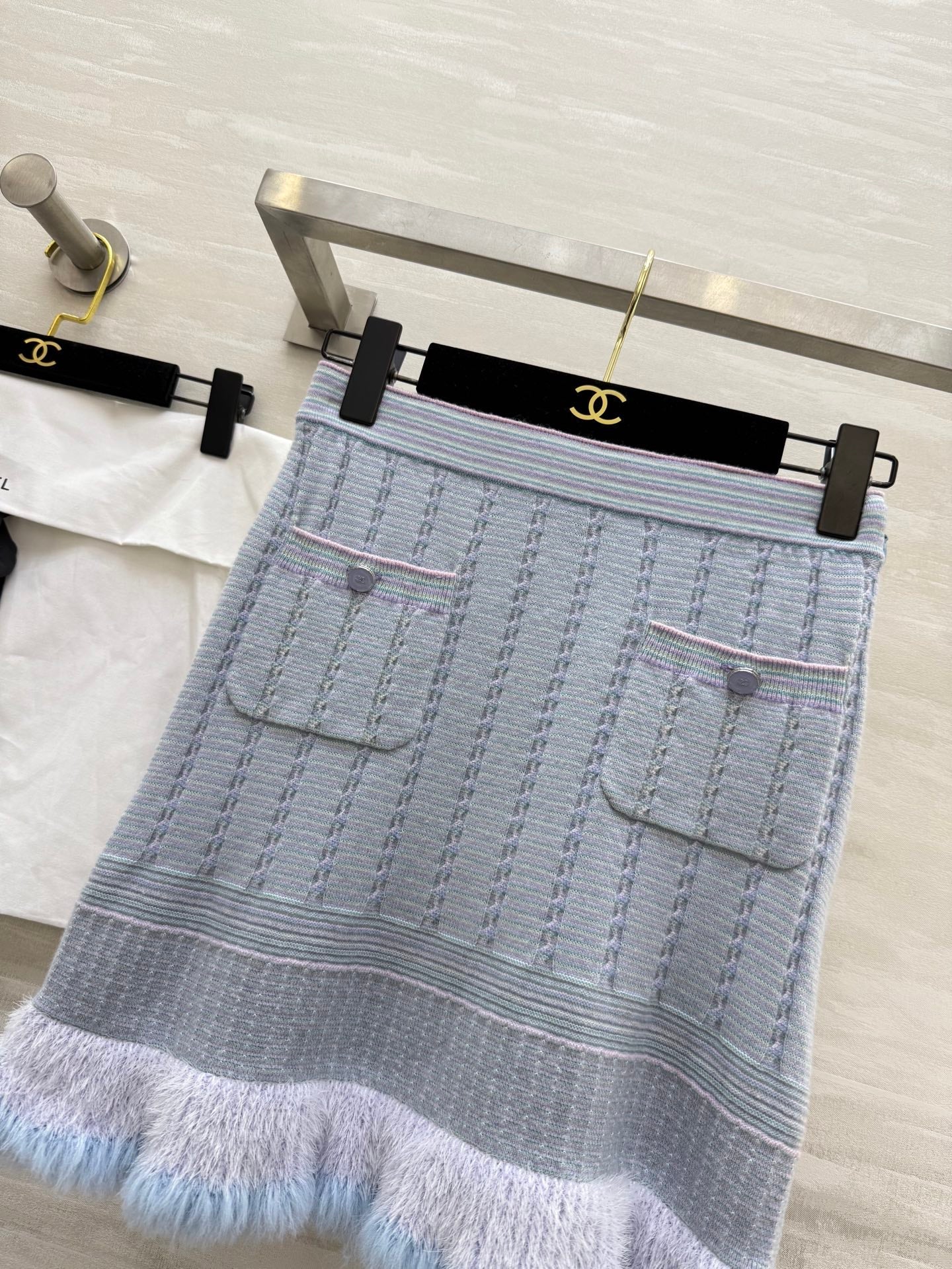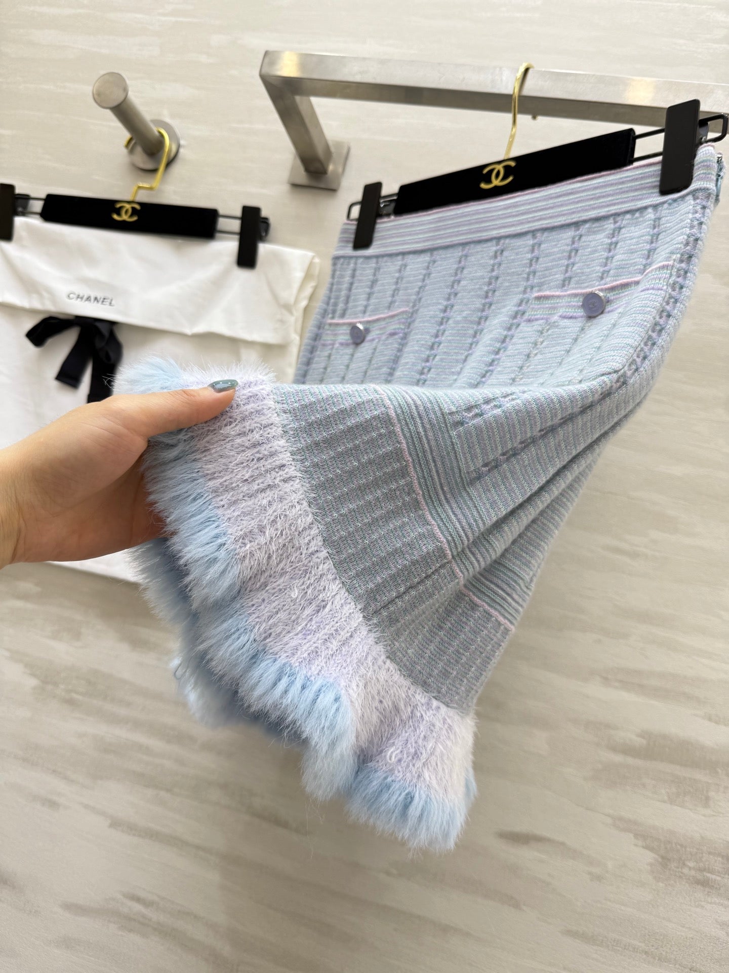CC 25B Multicolor Pocket Knitted Skirt Light Blue Cashmere