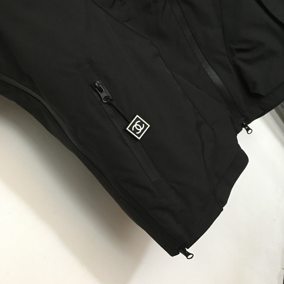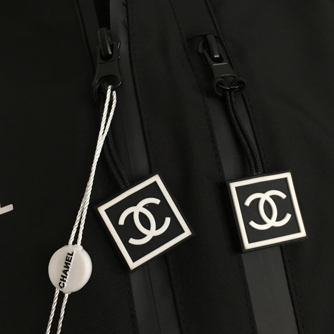 CC Logo Letter Print Zipper Pocket Long Sleeve Hooded Windbreaker Jacket