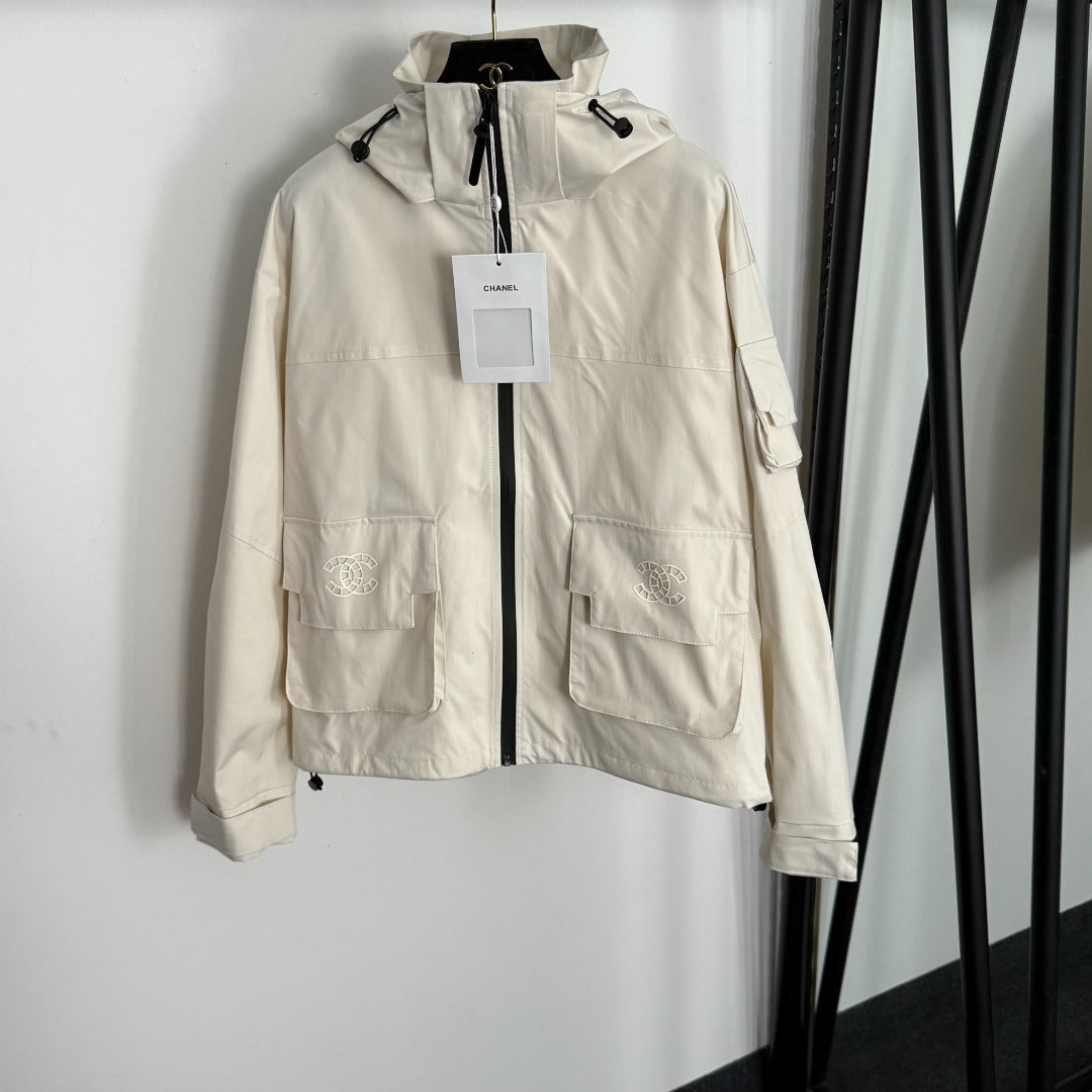 CC Pocket Velcro Long-sleeved Hooded Windbreaker Jacket