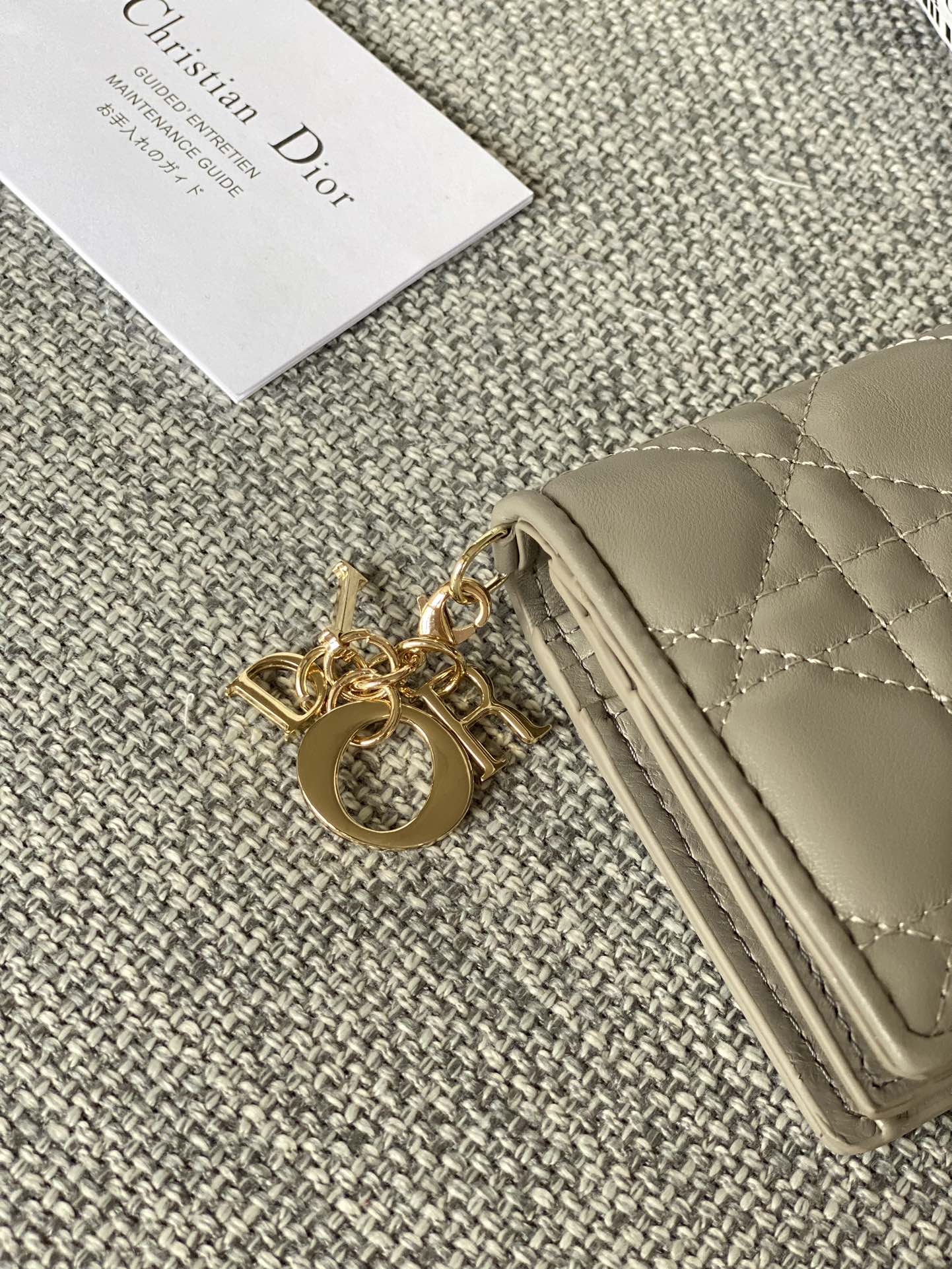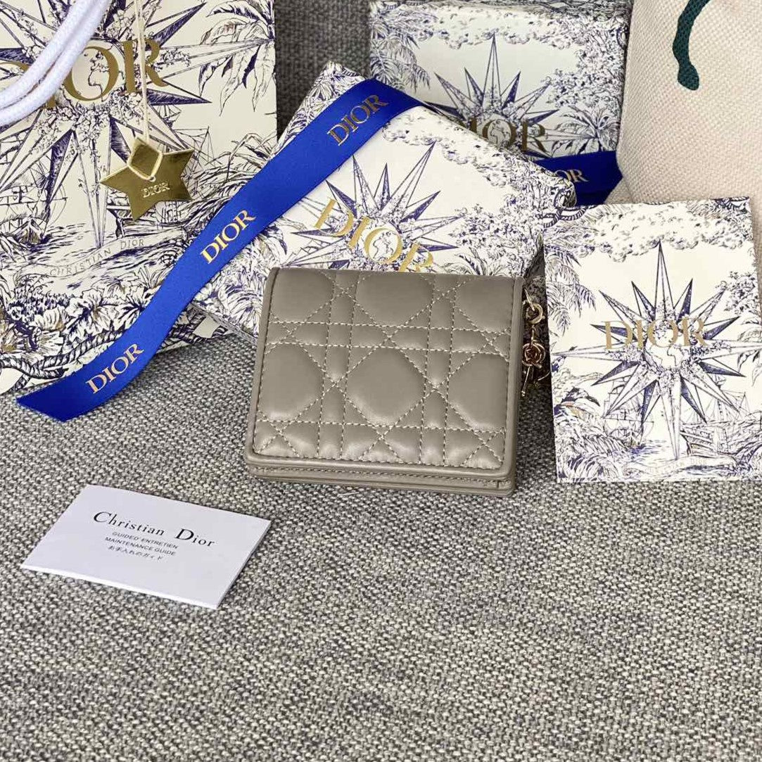 CD Caro 11cm Compact Wallet Grey Calfskin