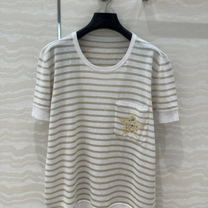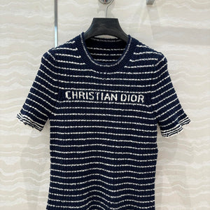 CD Striped knitted Top Navy Blue Cotton