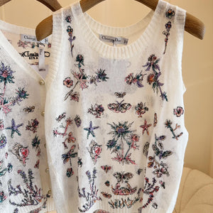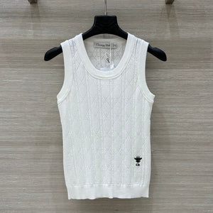 CD 25 Hollow Knitted Vest White Silk Wool