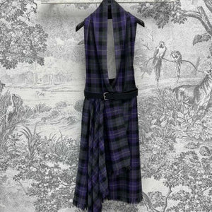 CD 25 Halter-neck Backless Dress Purple Black Wool Fabric