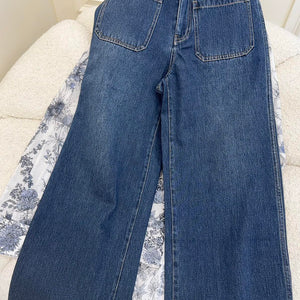 CD 2025 Monogram Straight Trouser Blue Grey Polyester