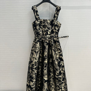 CD 25 Print Dress Black Gold Jacquard fabric