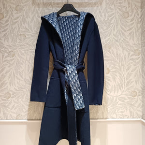 CD Hooded Long Coat Navy Blue Wool Silk