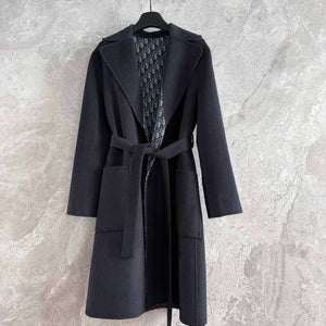 CD Hooded Long Coat Black Wool Silk
