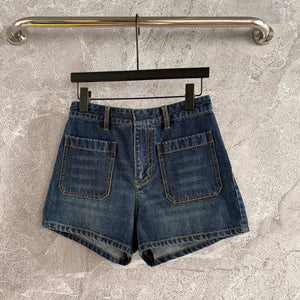 CD Patch Pocket Denim Shorts Blue Cotton