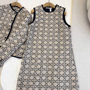 CD 2025 Plaid Dress Beige Cotton