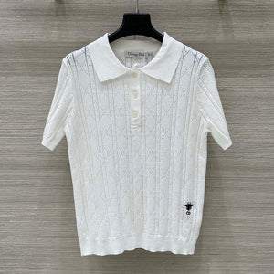 CD 25 Hollow Polo Knitted Short-sleeved Top White Silk Wool