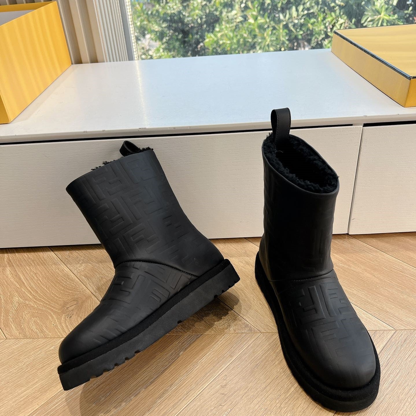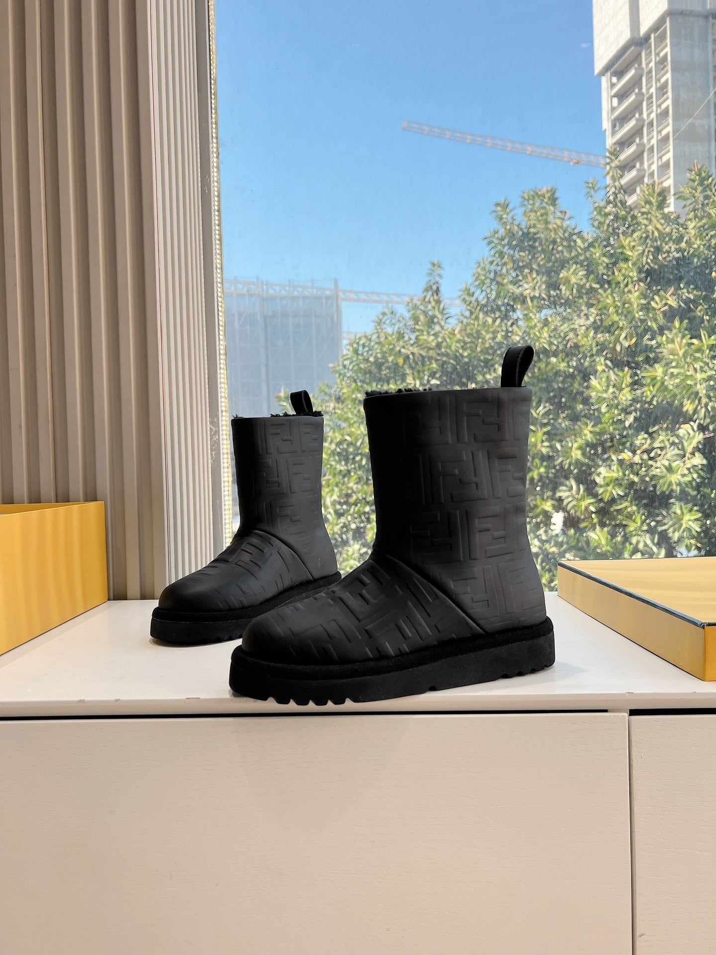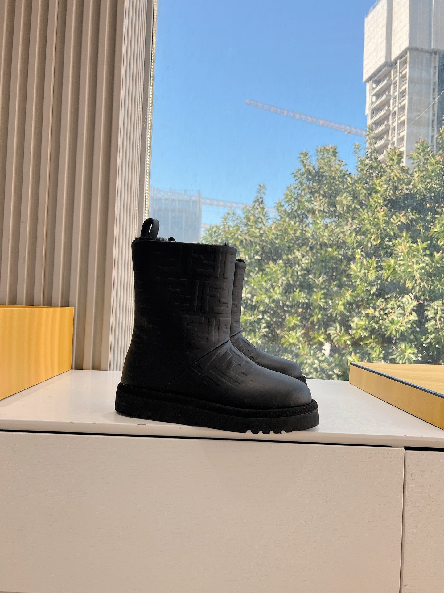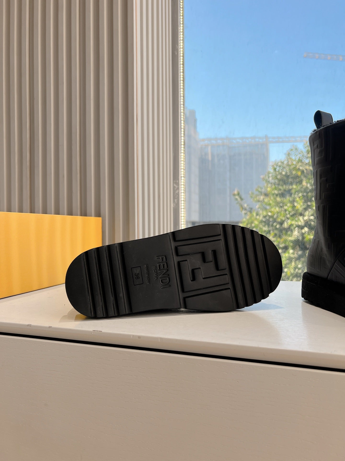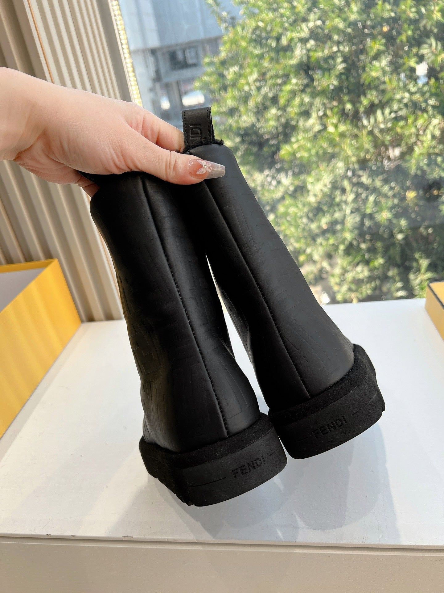 Fendi Apres Chic with FF chamois Boots Black Cowhide 475230