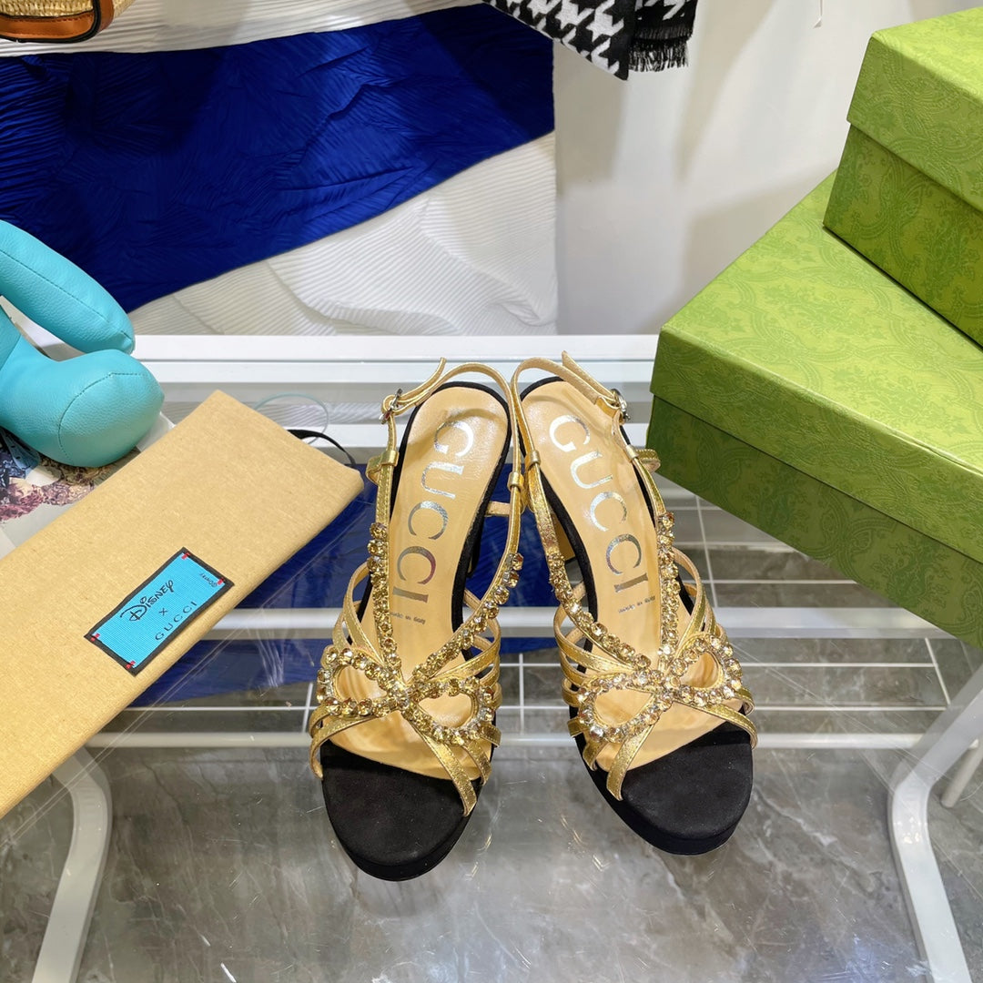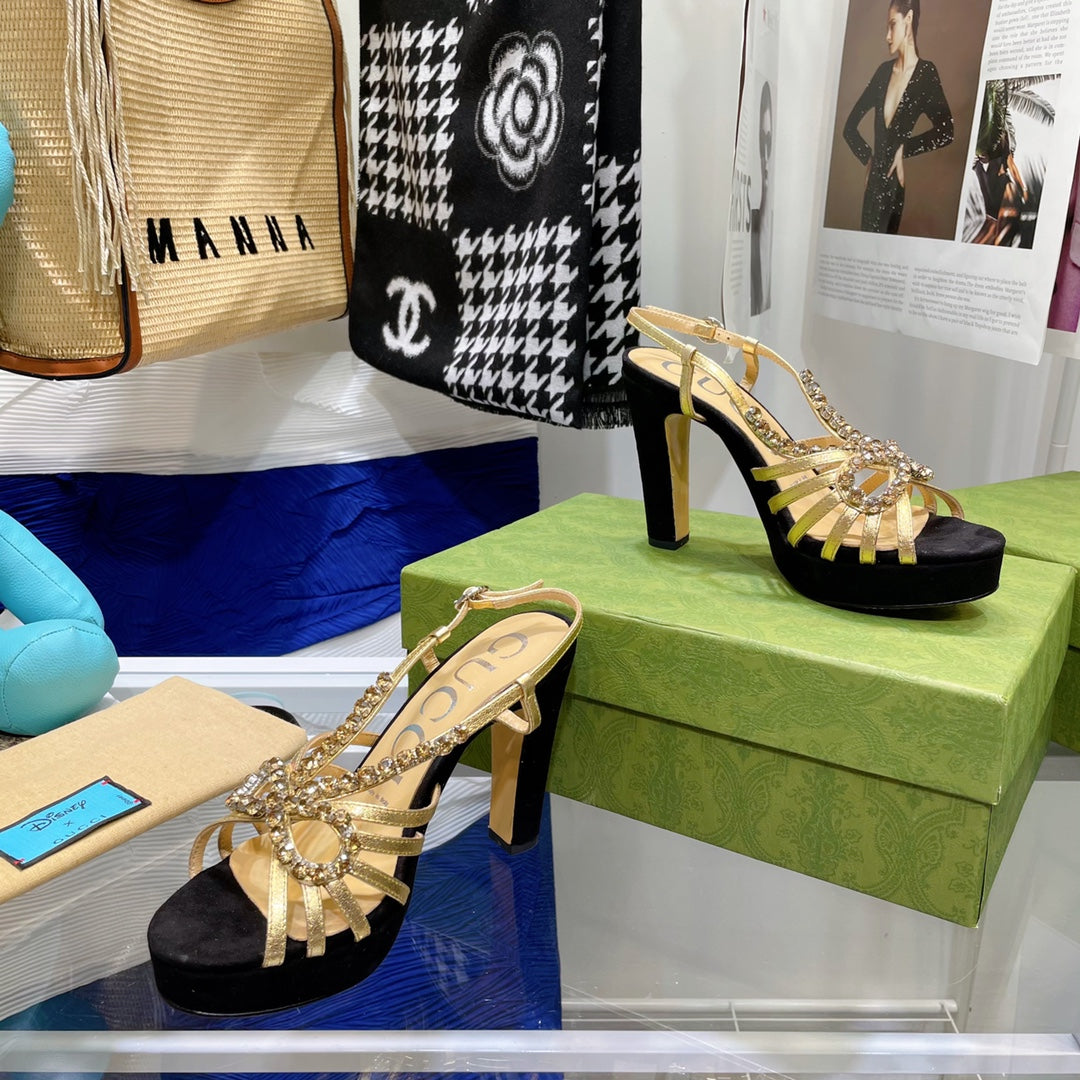 GG CRYSTAL HIGH HEEL SANDAL BLACK LAMBSKIN
