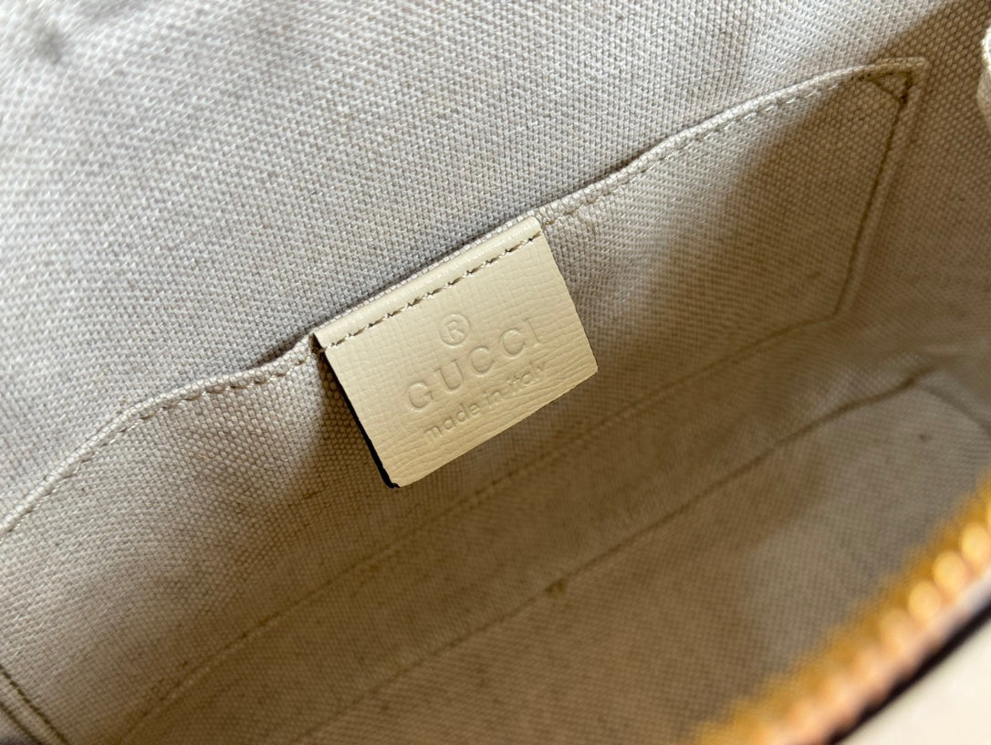 GG Horsebit 1955 Small Top Handle Bag Beige & White GG Monogram Fabric 272171