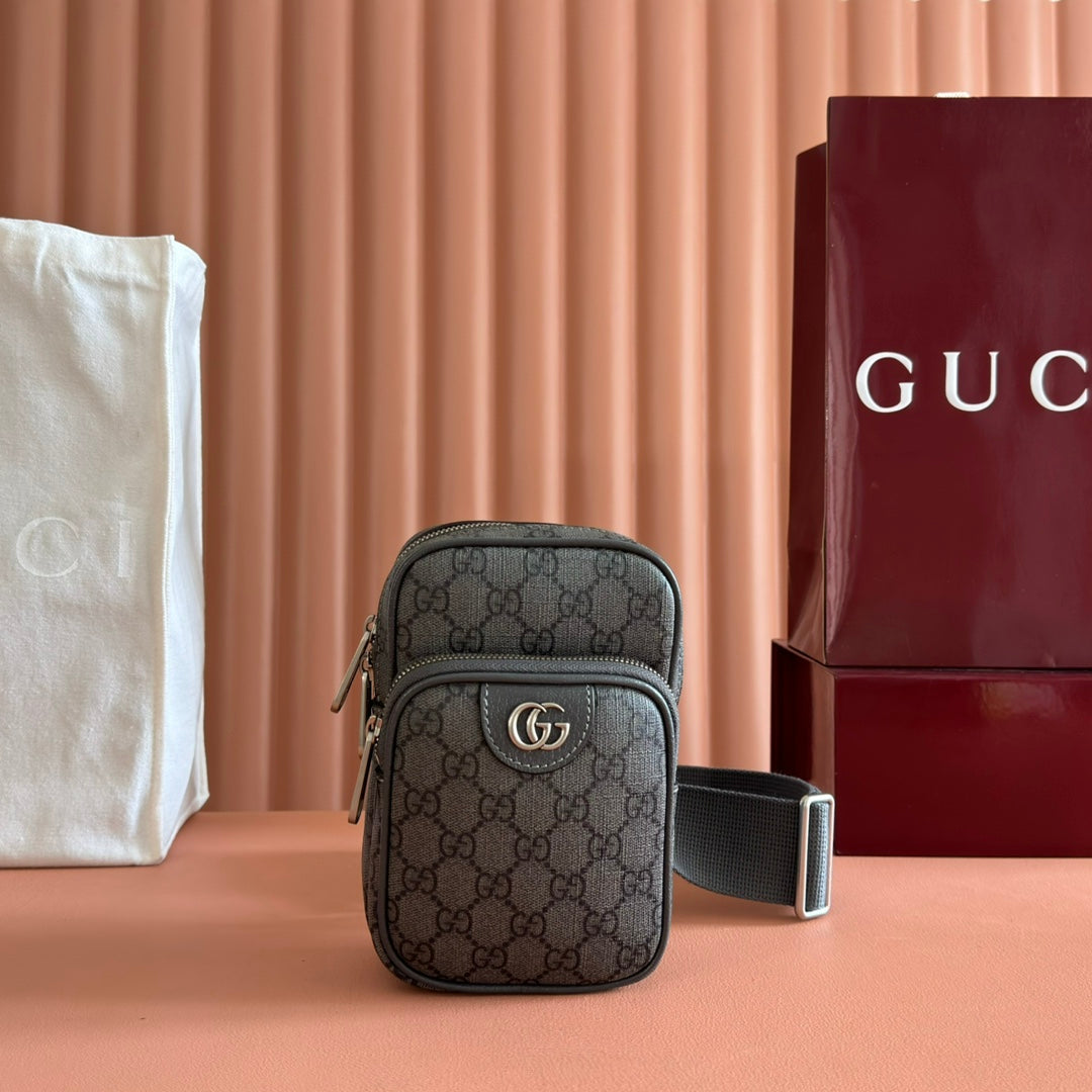 GG Ophidia GG Mini Handbag 12cm Dark Grey Supreme Canvas