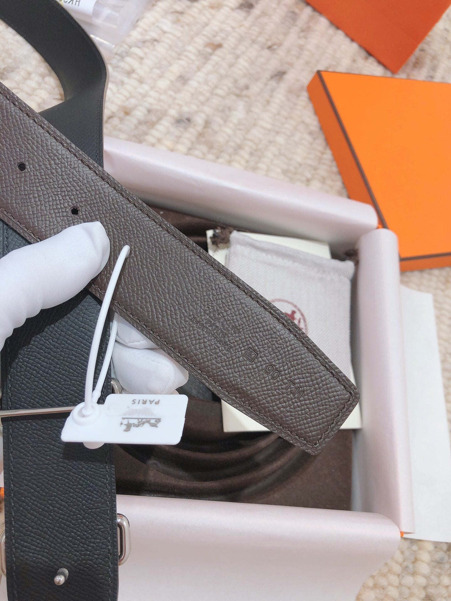 H TONIGHT BELT 38MM CHOCOLATE PRUSSIAN BLUE LEATHER