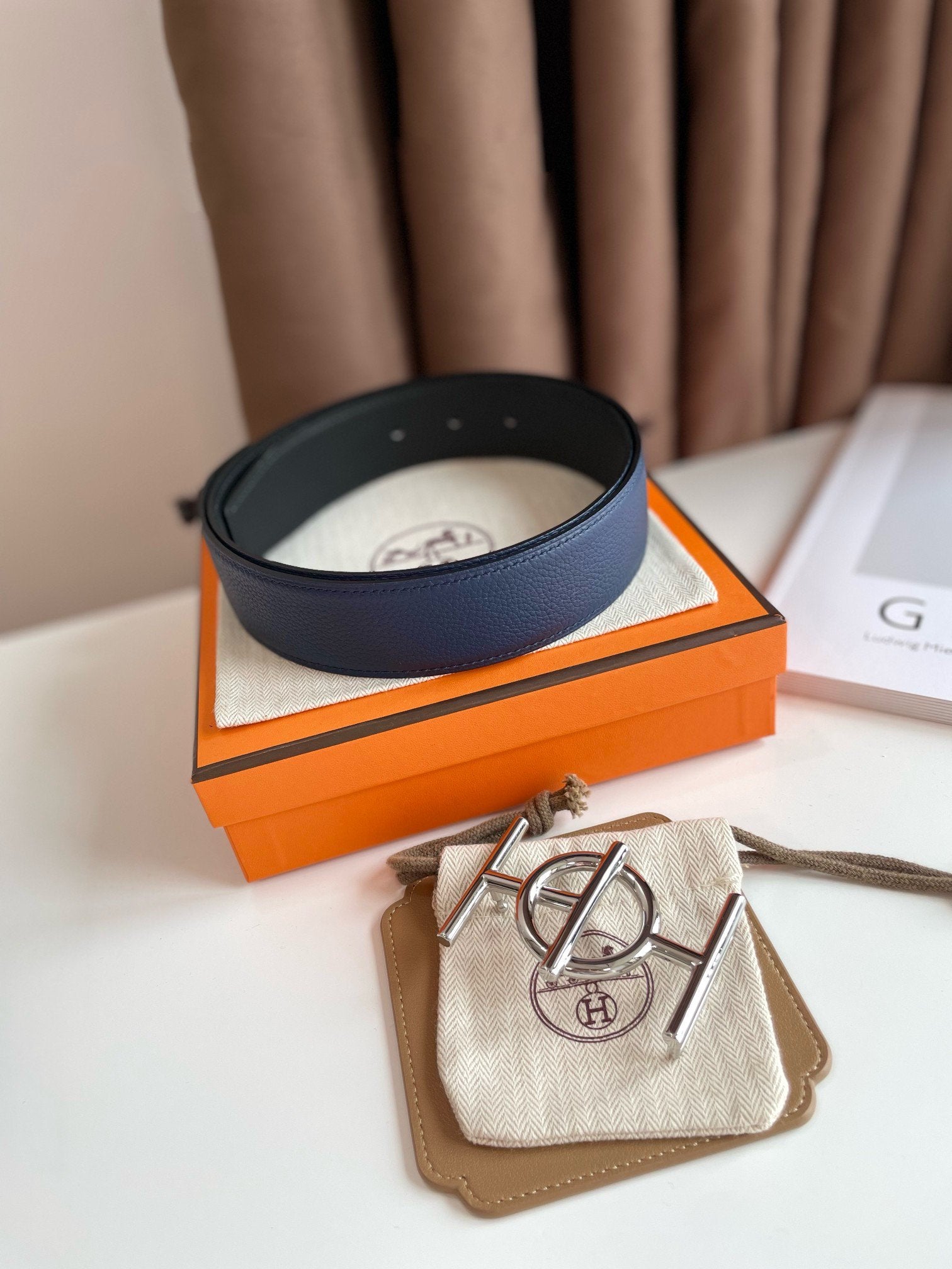 H ULYSSE BELT 38MM SILVER BUCKLE BLACK BLUE LEATHER