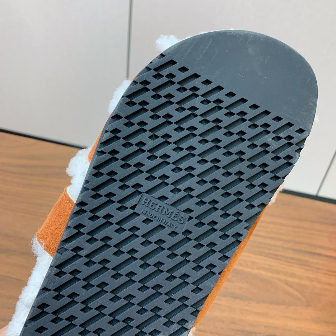 HM Chypre Sandal In Brown Orange Mix White Fleece And Suede 984198