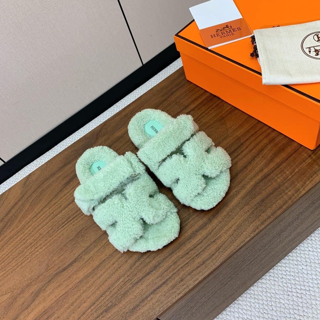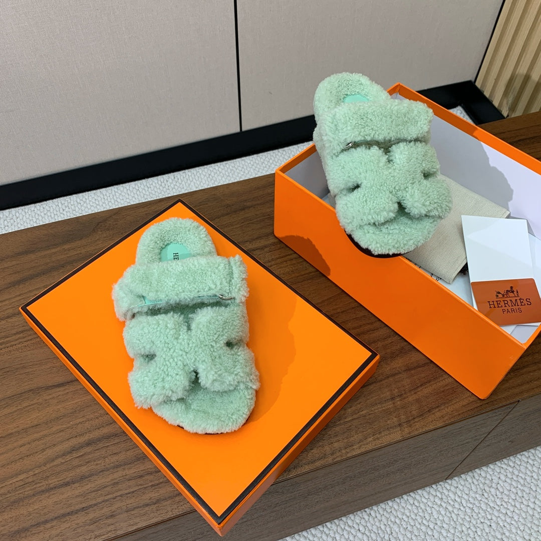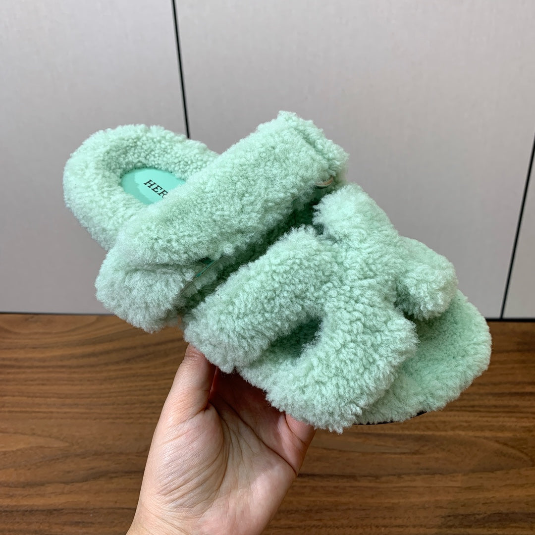 HM Chypre Sandal In Light Turquoise Lamb Wool 984178