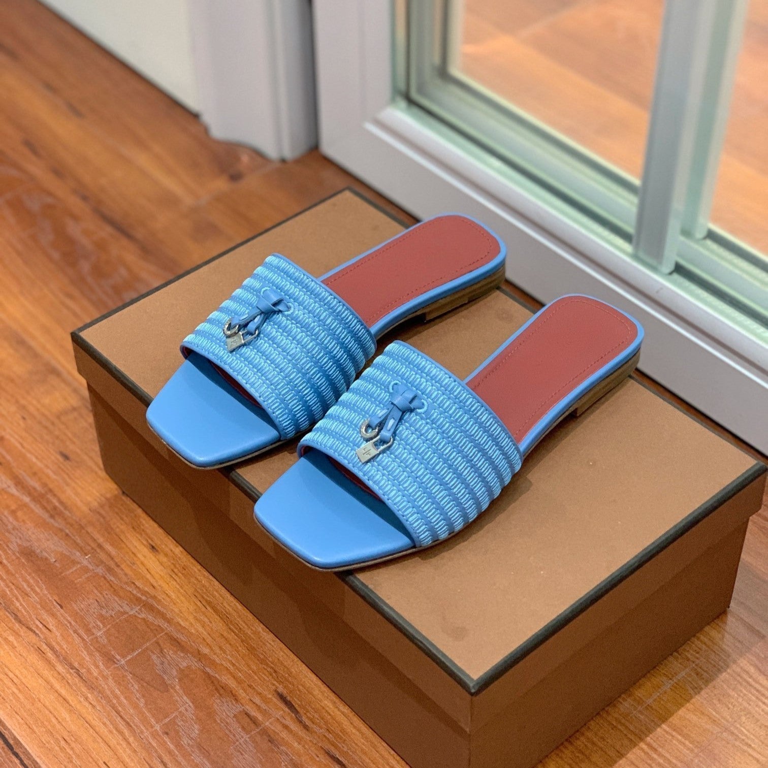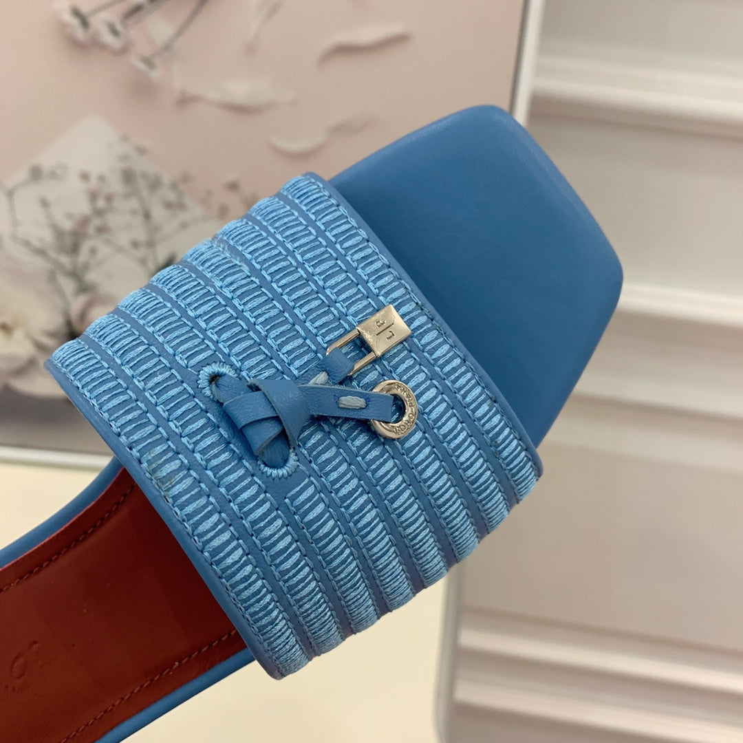 Quare Toe Sprightly Charms Mule Cloud Blue Marron Calfskin