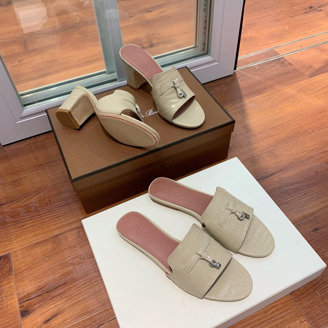 Summer Charms Sandals Mule Beige Crocodile Pattern Pink Lambskin