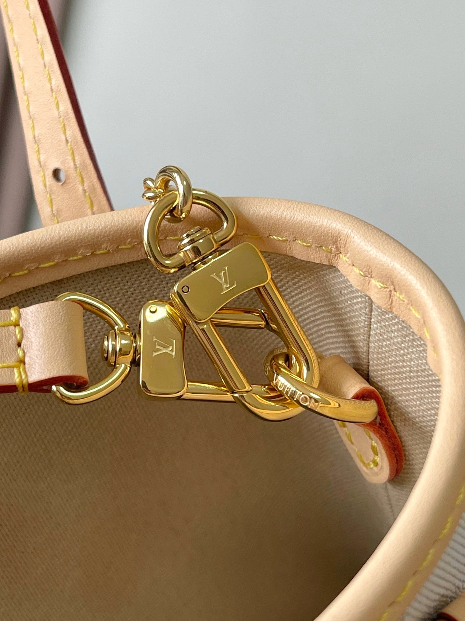 NANO BUCKET 17 IN WHITE MONOGRAM JACQUARD AND BEIGE CALFSKIN TRIM