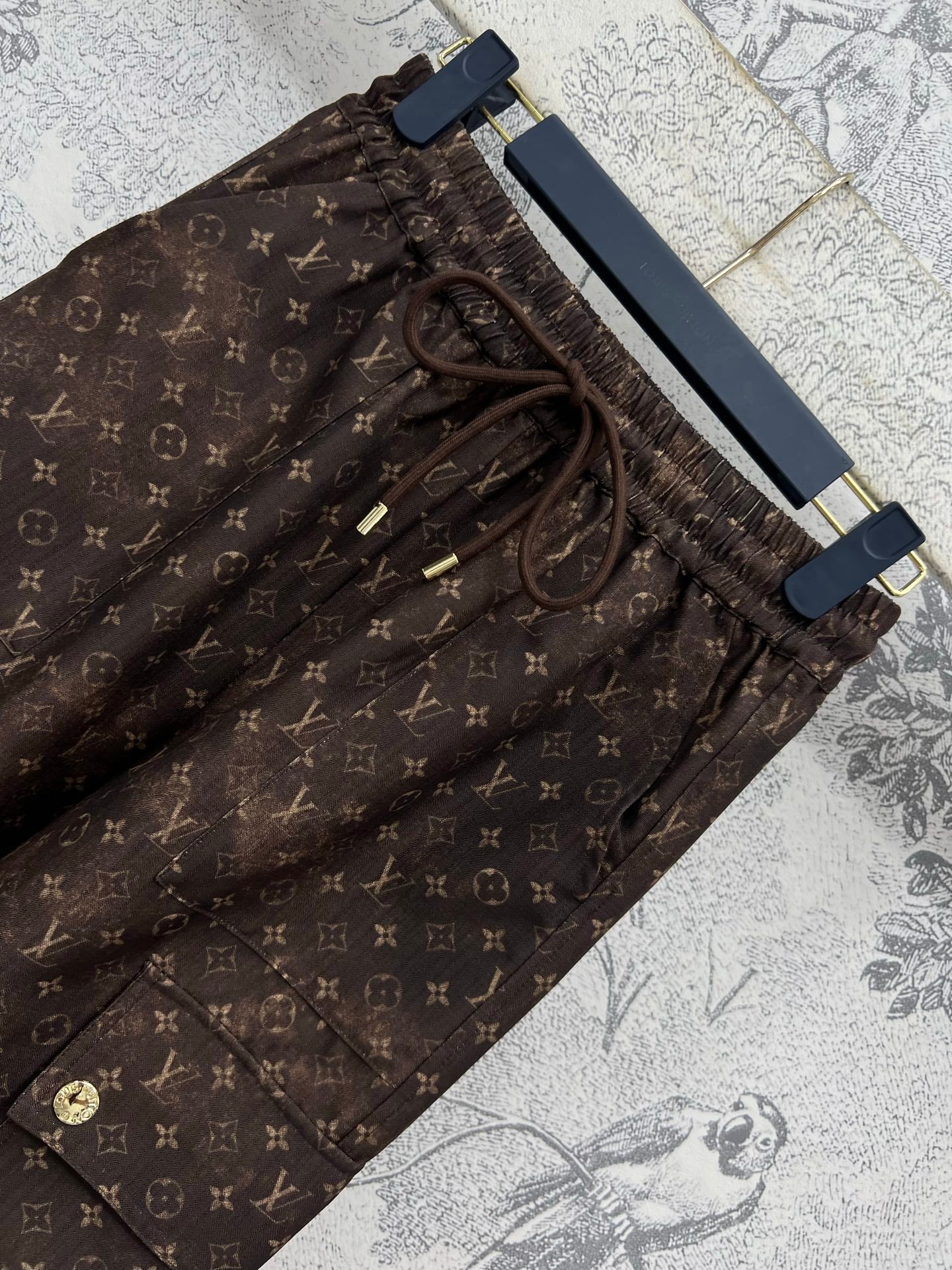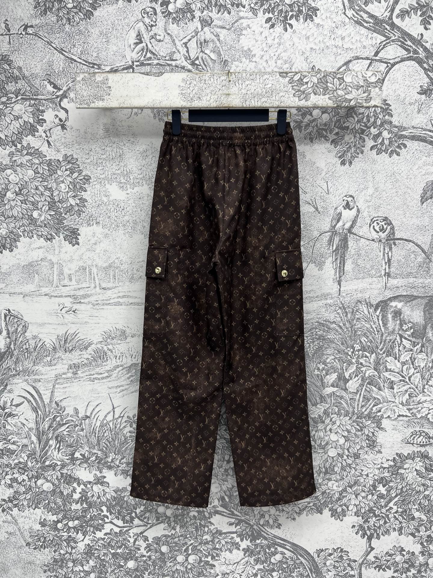 LV 25 Monogram Jacquard Workwear Straight Pants Brown Polyester