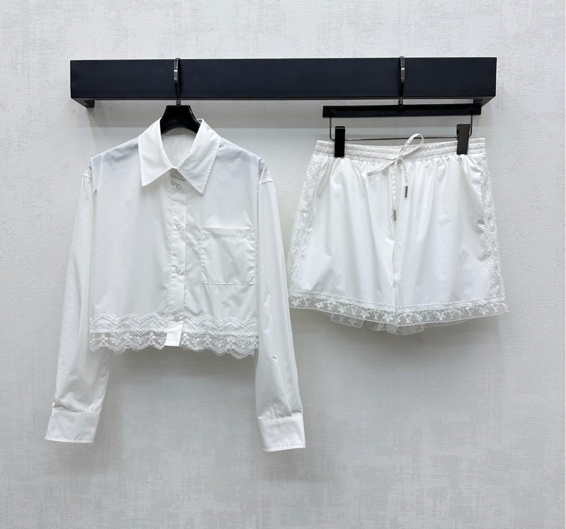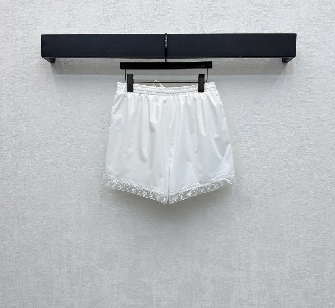 LV25 Lace-Trimmed Shirt and Shorts Set White Cotton 290149