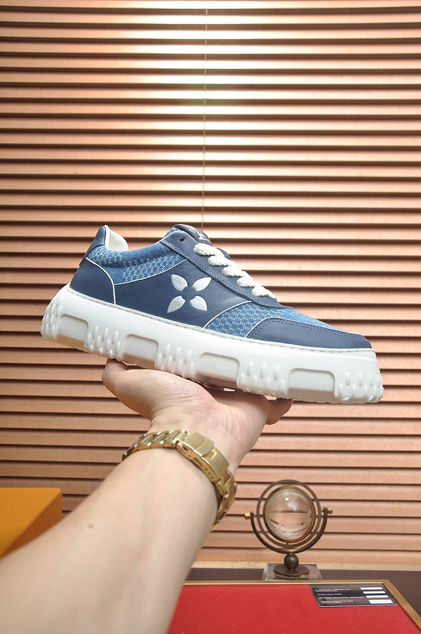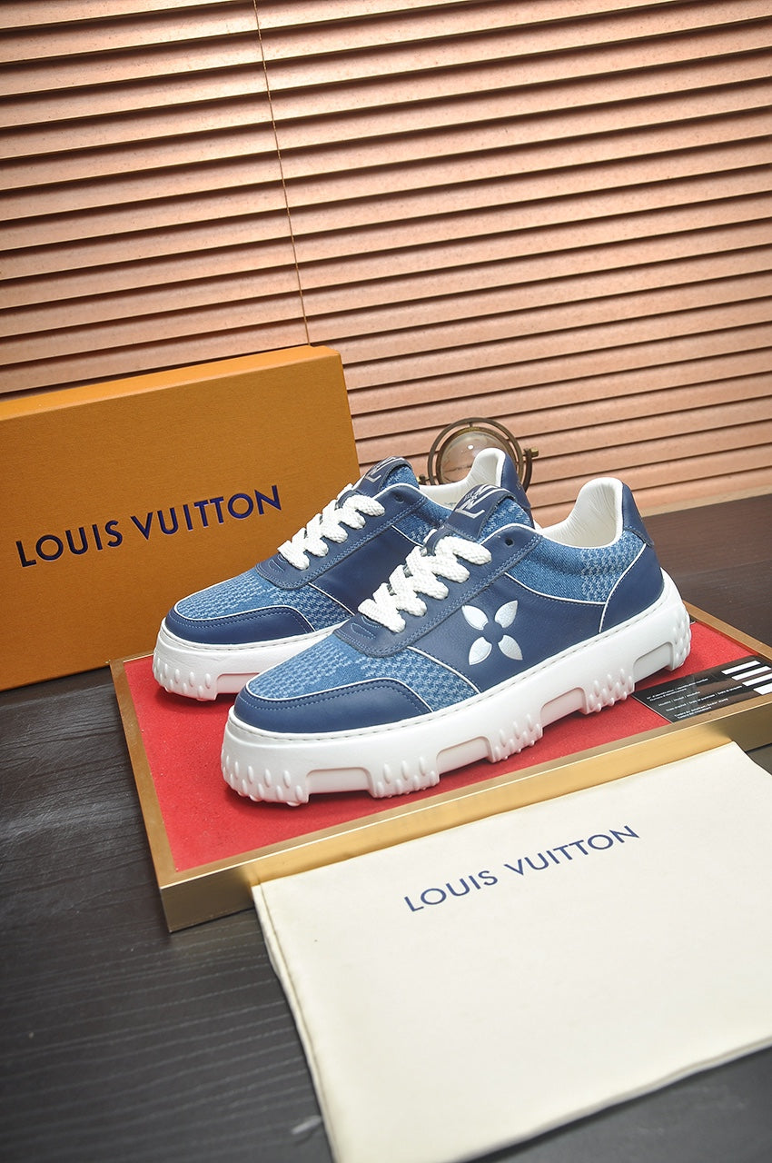 LV TRAINER BLUE COBALT CALFSKIN AND DENIM