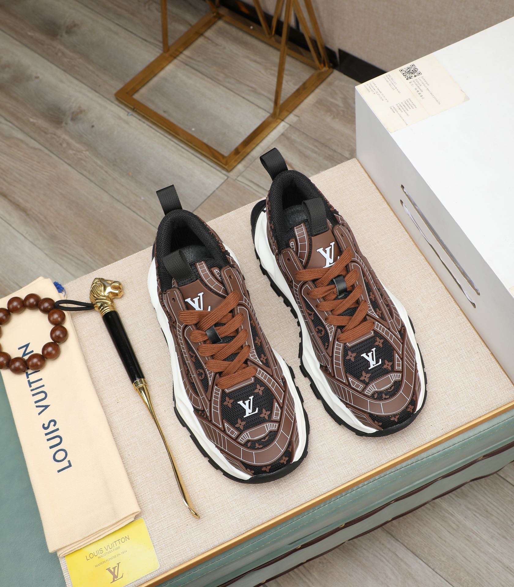 LV TRAINER IN CHOCOLATE BROWN CALFSKIN AND BREATHABLE MESH