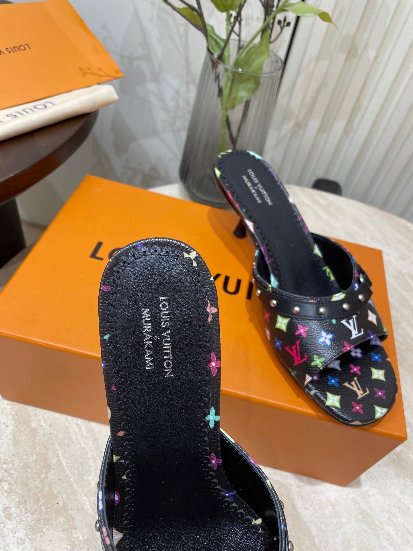 HIGH 5 CM MULES IN BLACK MONOGRAM LAMBSKIN