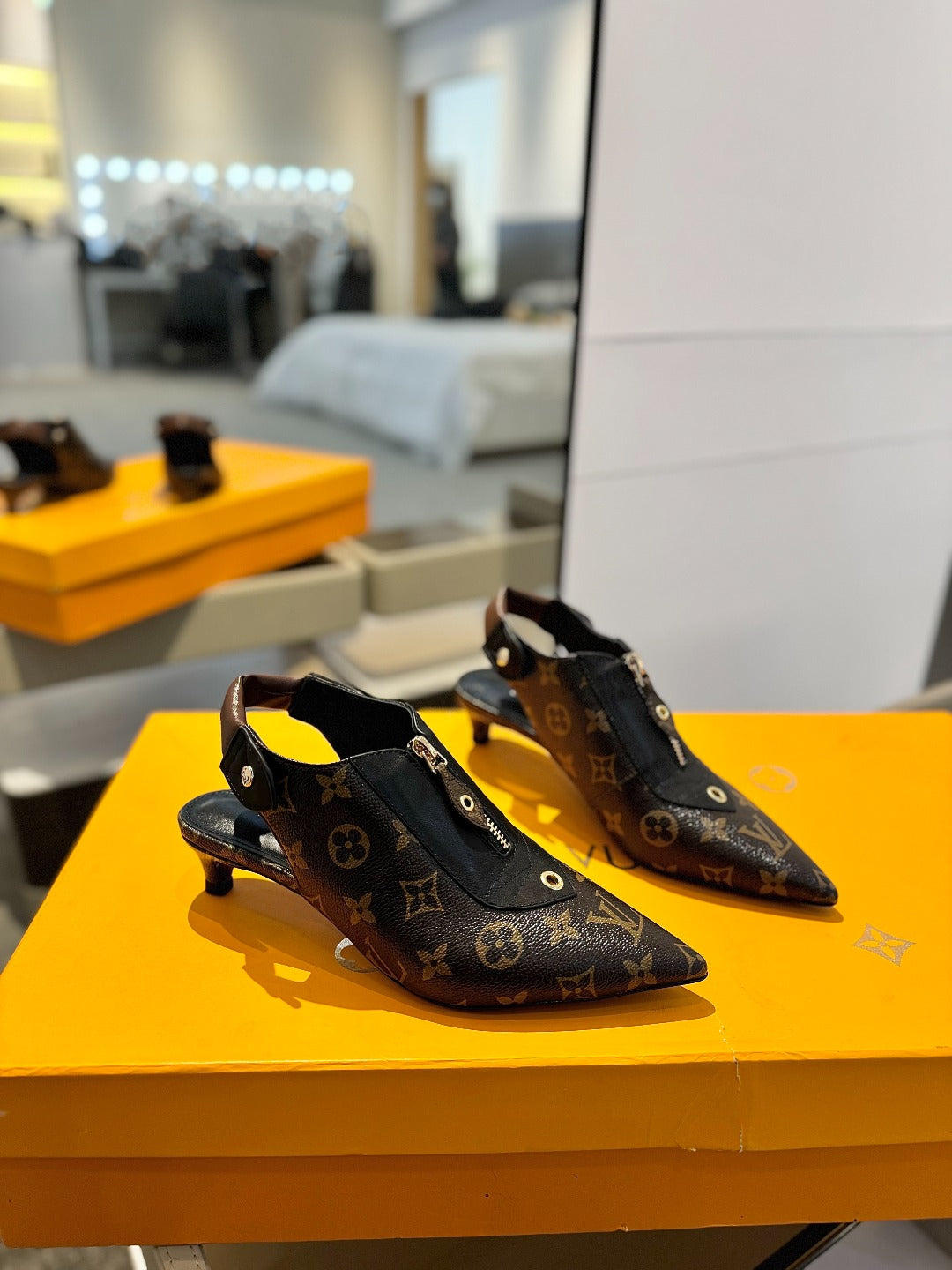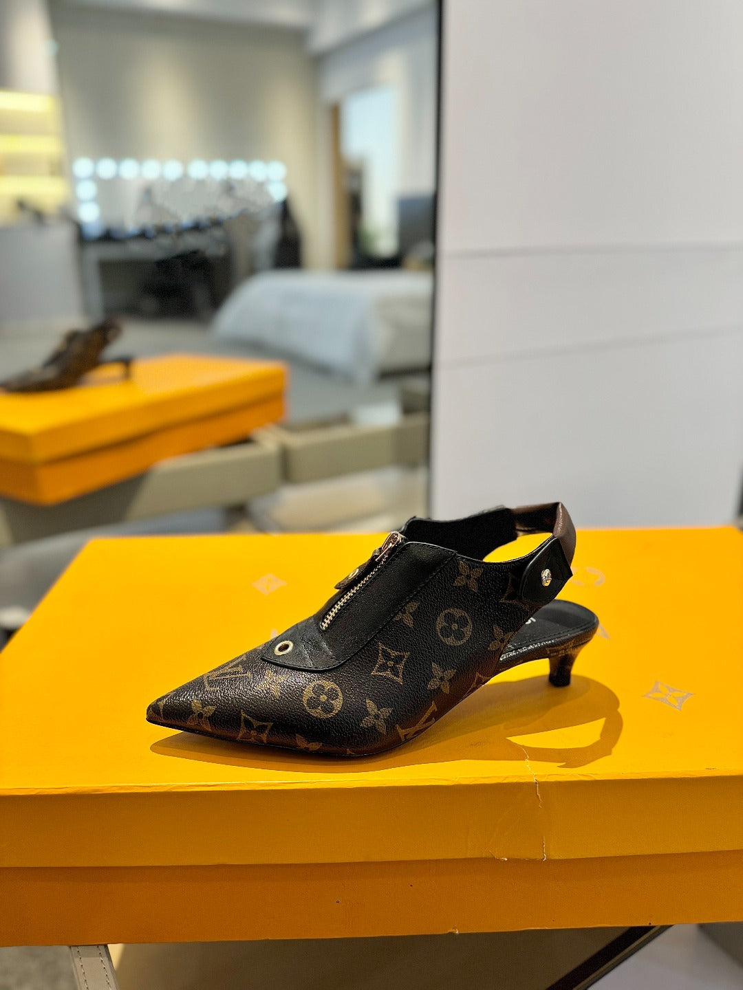 ALLURE HIGH 4.5 CM SLINGBACK IN CHOCOLATE BROWN MONOGRAM CALFSKIN