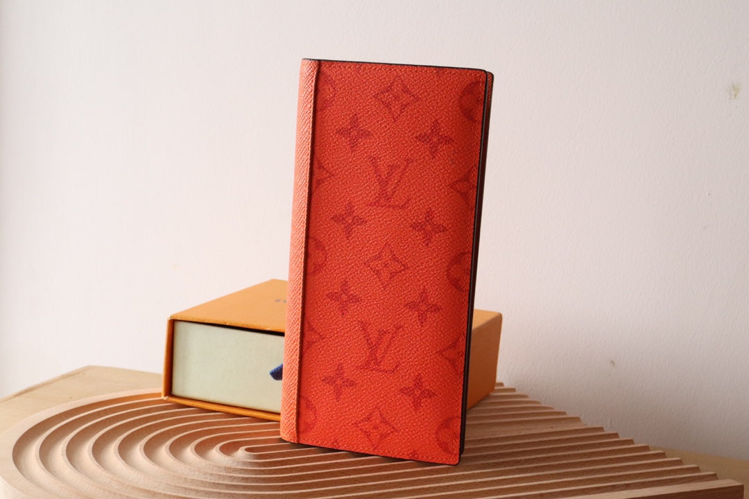 LV BRAZZA Wallet Orange Taiga Leather & Monogram Eclipse Canvas 180048