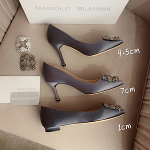 Hangisi Black Satin Crystal Embellished Pumps 156288