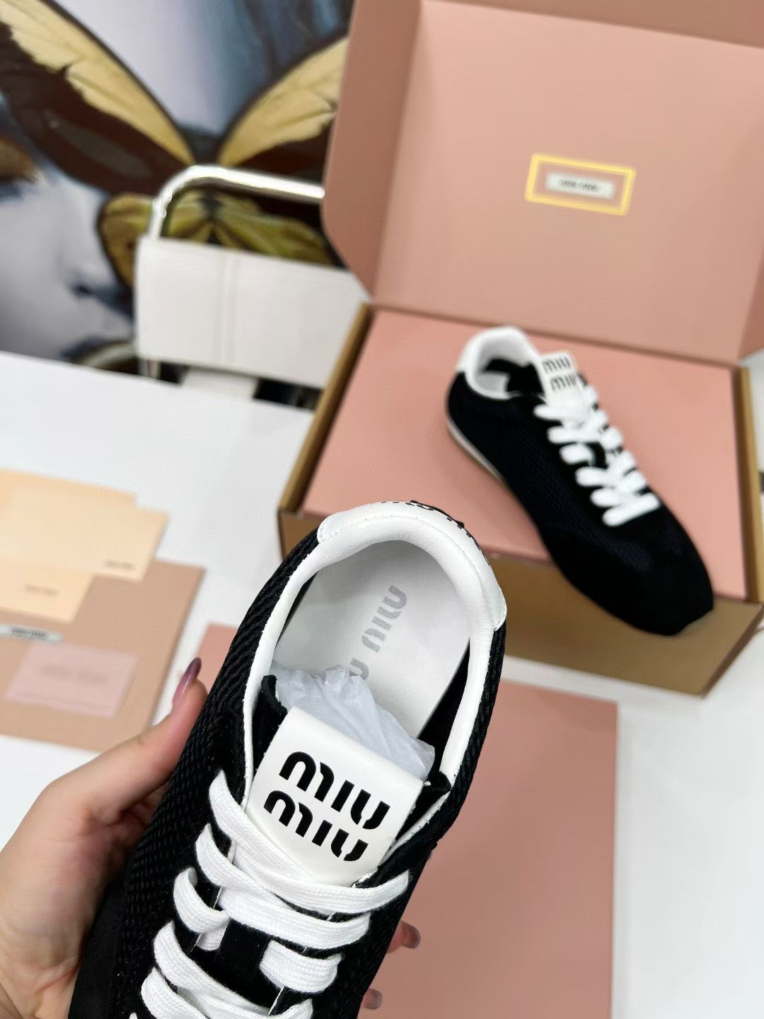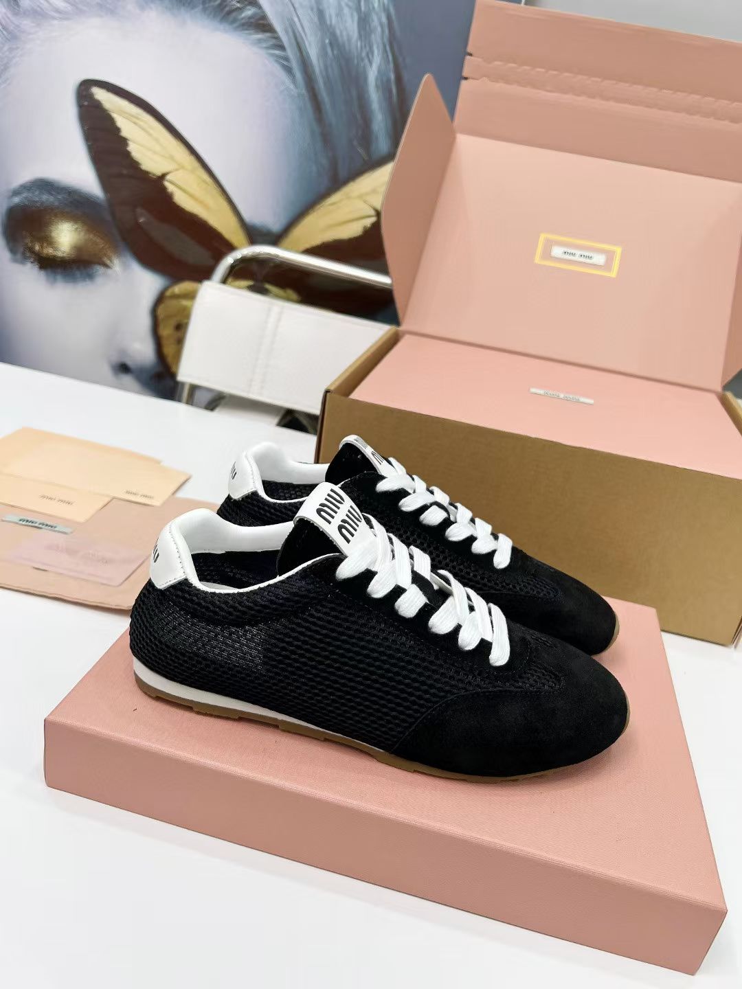 Miu Plume Sneakers Black Suede Lace 456348