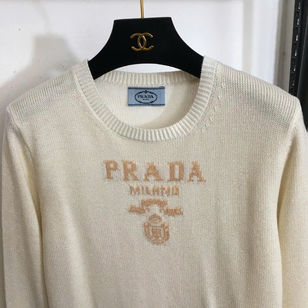 Prad Logo Crew-Neck Sweater in Bright Silk Blend Wool